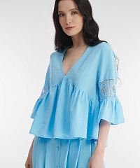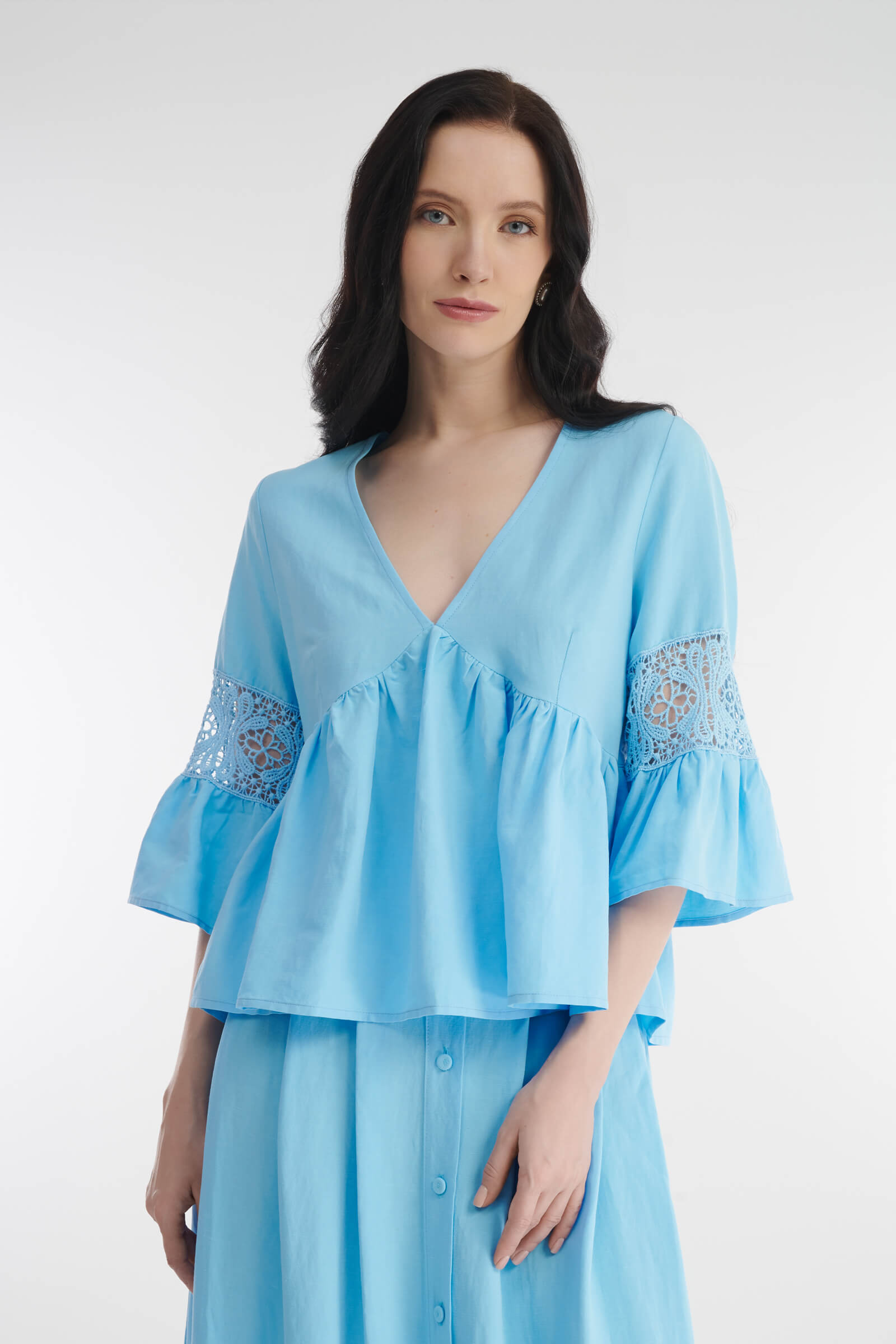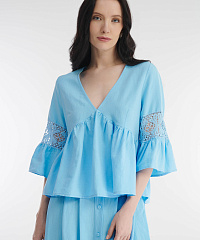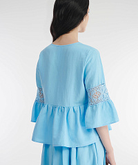 - Рукава украшены вставками с ажурным кружевом в технике кроше