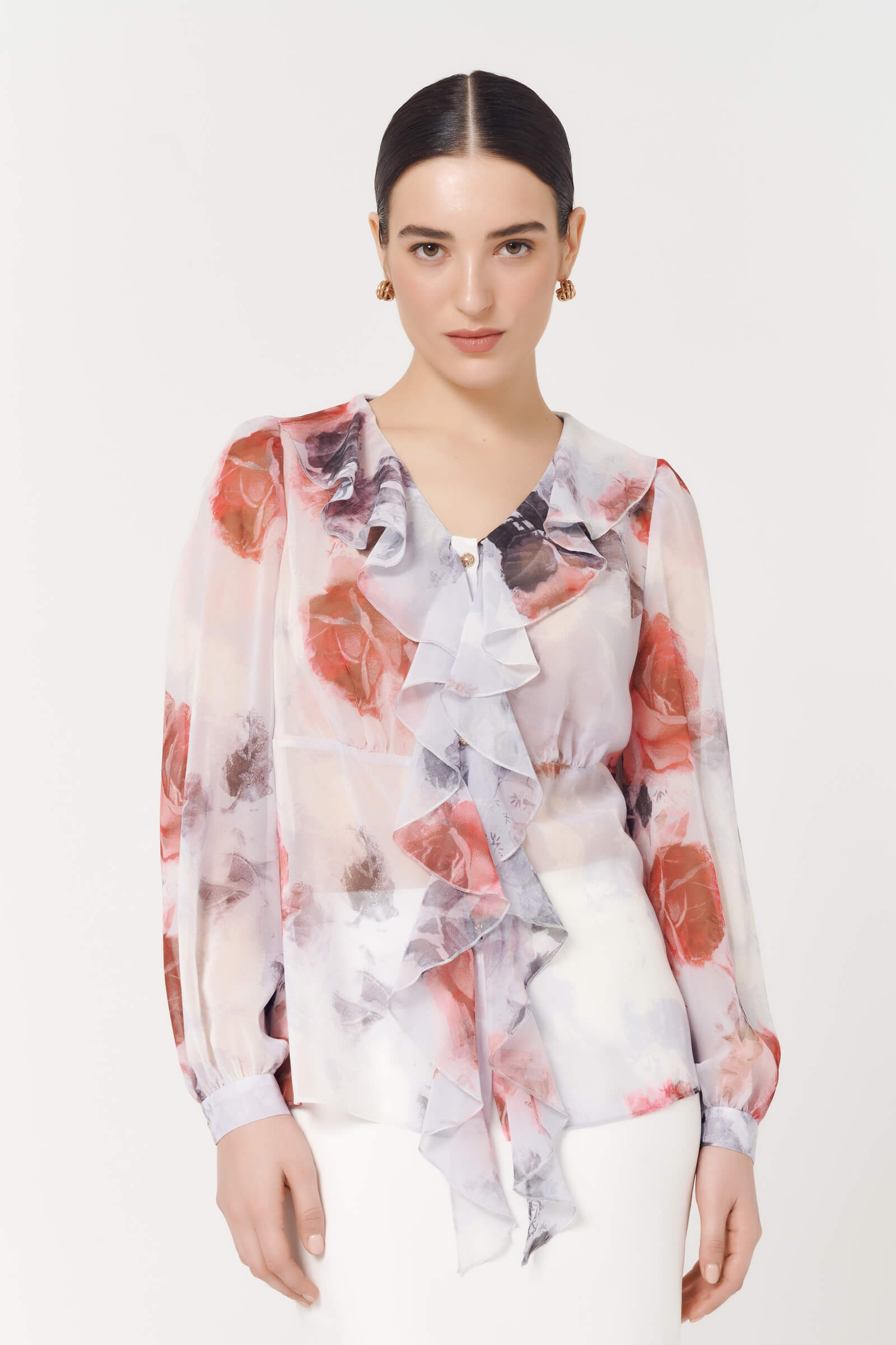 Легкая , нежная блузка с цветочным принтом для романтических образов.