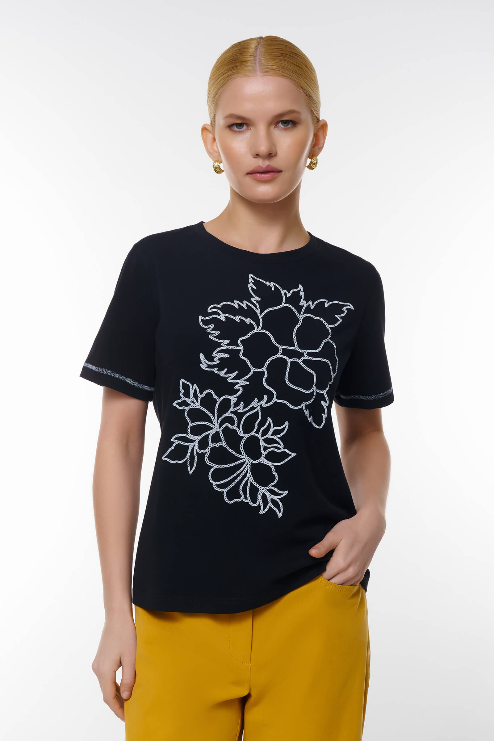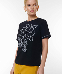 Футболка с цветочной вышивкой от Caterina Leman. Выполненная из мягкого и дышащего хлопка, эта футболка станет идеальным дополнением к вашему гардеробу. Свободный крой и короткие рукава обеспечивают комфорт в любое время года, а изысканная вышивка добавляет нотку изящества. Подойдет как для повседневной носки, так и для особых случаев.