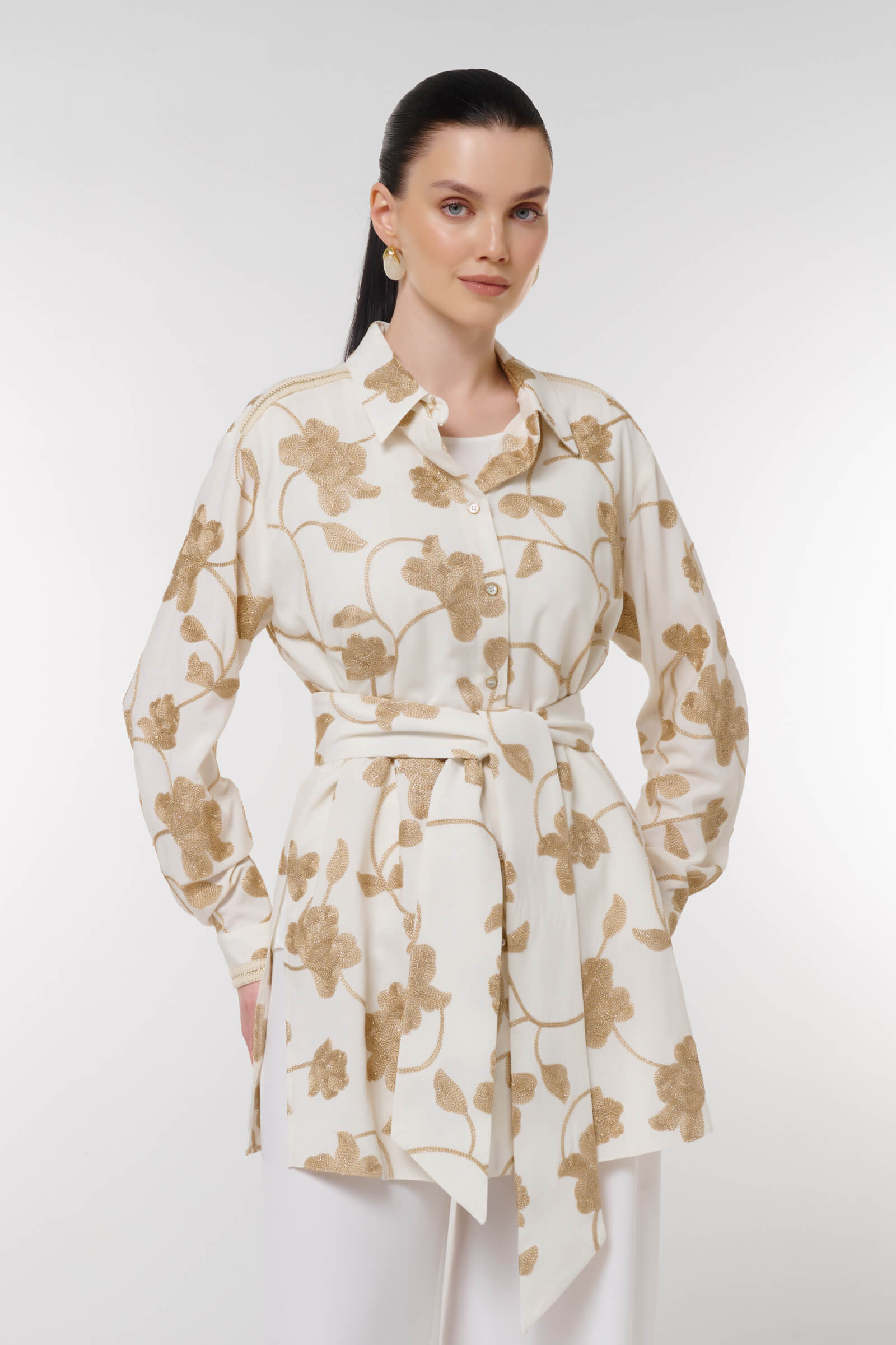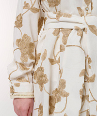 Эта шикарная блуза с цветочным узором — идеальный выбор для стильных образов на любой случай. Золотистые акценты придают ей особую изысканность, а свободный крой и пояс подчеркивают фигурные линии. Благодаря длинным рукавам и классическому колпаку, эта блуза отлично подойдет как для офисного стиля, так и для вечерних мероприятий. Создайте уникальный образ, сочетая её с юбками, брюками или шортами!