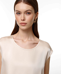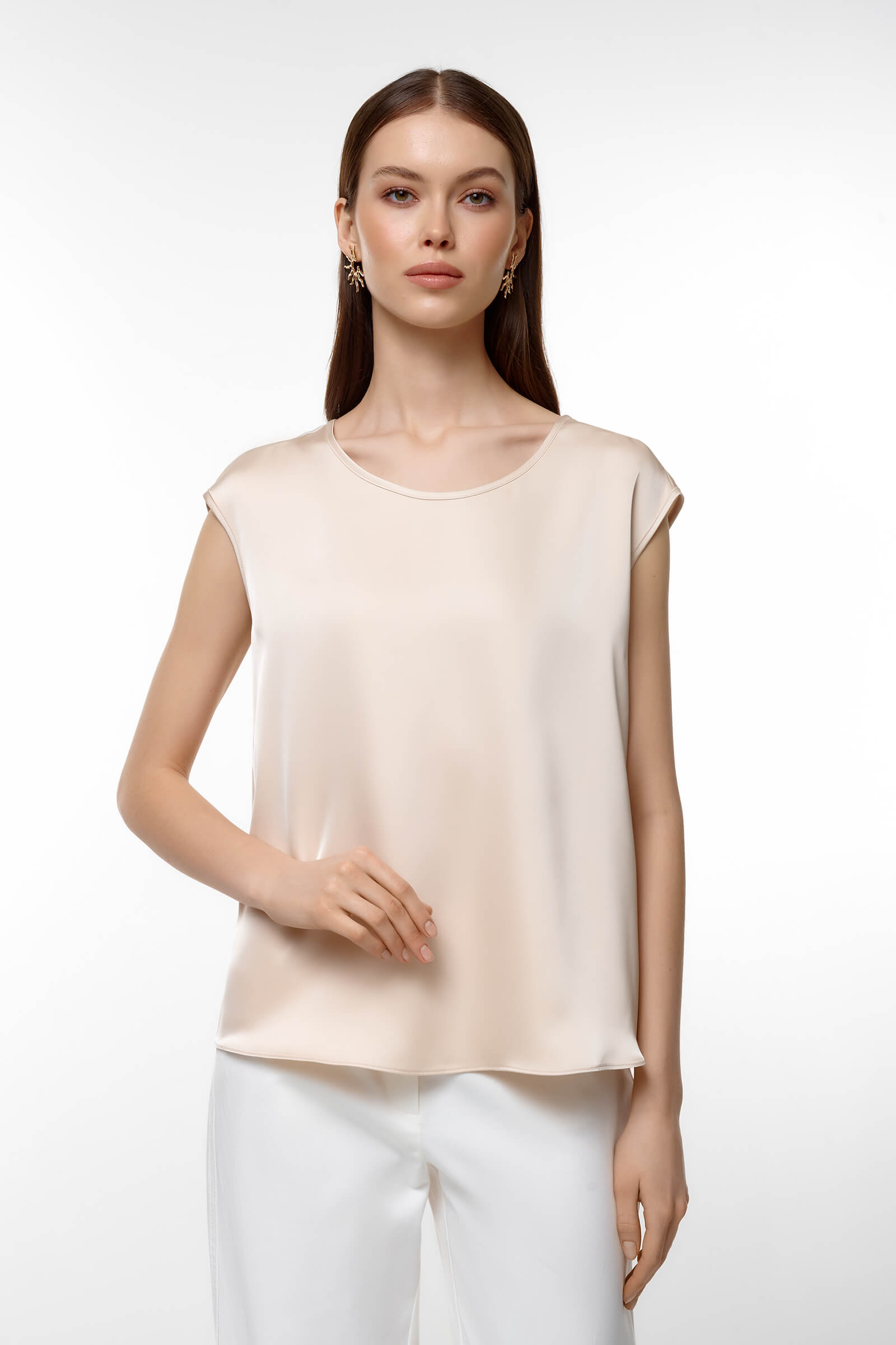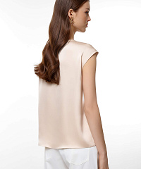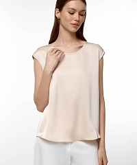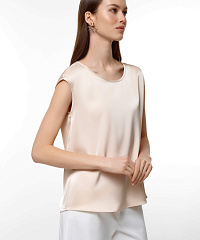Элегантный топ со струящейся фактурой станет универсальной основой гардероба. Лаконичный дизайн уместен и в деловых, и в вечерних образах. Свободный крой позволяет носить изделие навыпуск или заправленным — в любом варианте образ выглядит стильно и современно