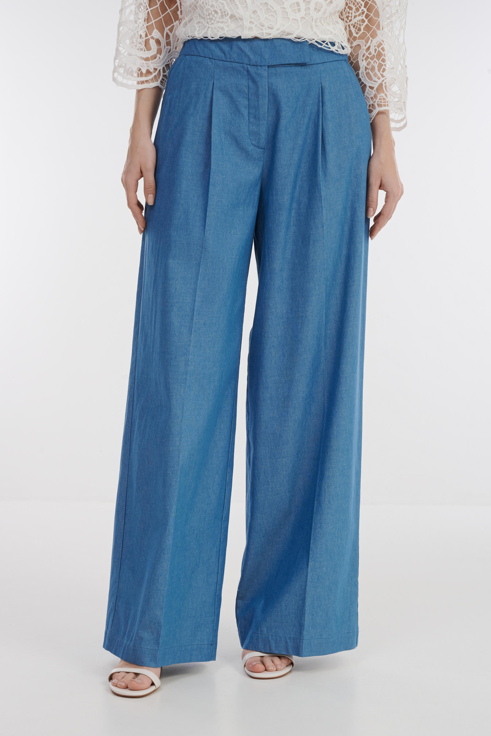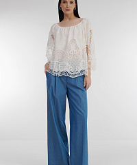 - Широкие брюки полной длины с защипами и стрелками