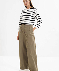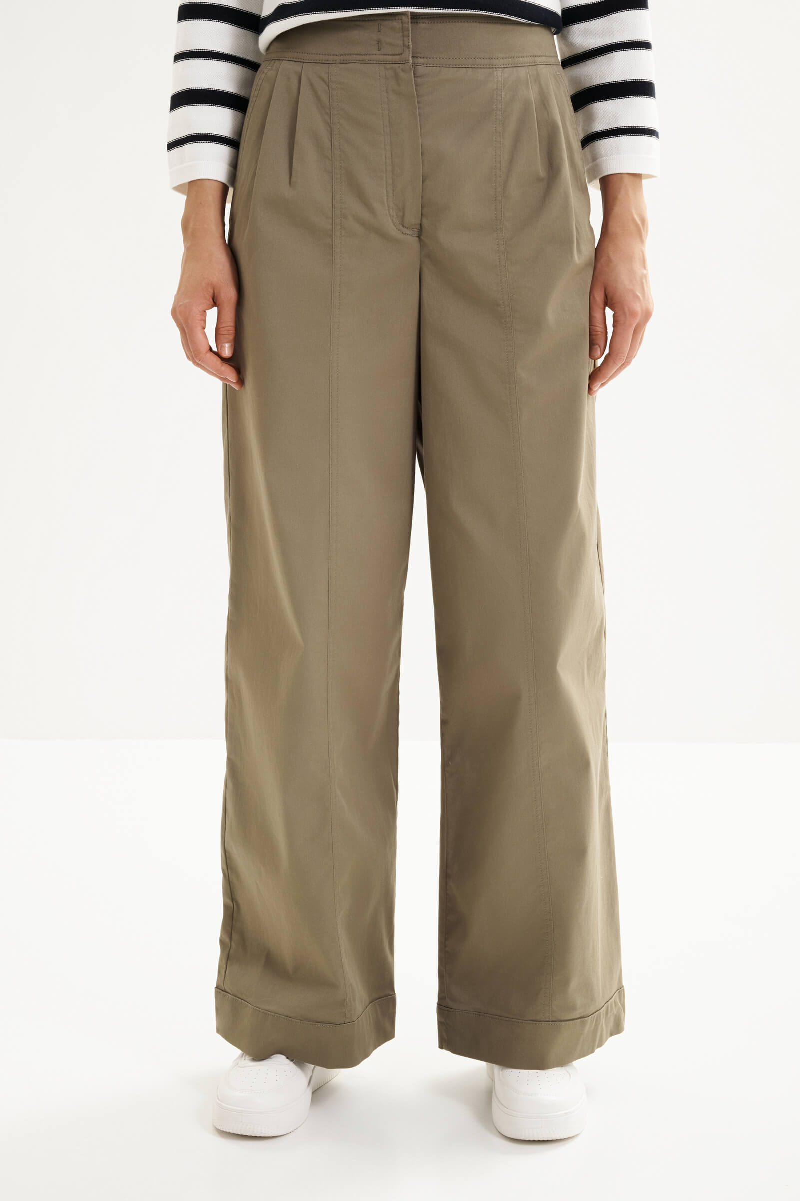 - Брюки-палаццо полной длины с характерными защипами