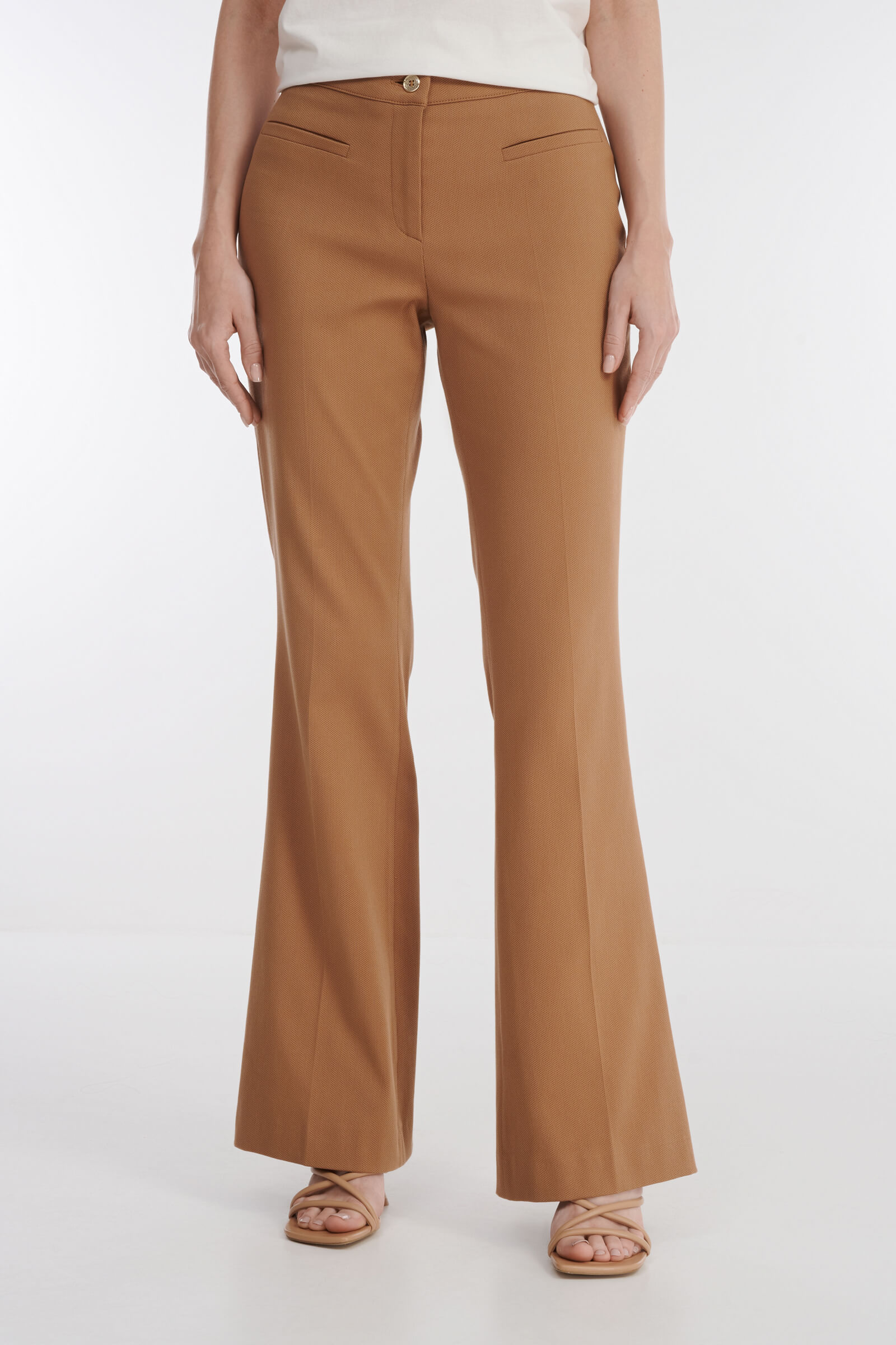 - Расклешенные брюки полной длины со стрелками