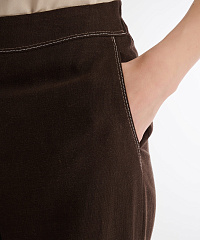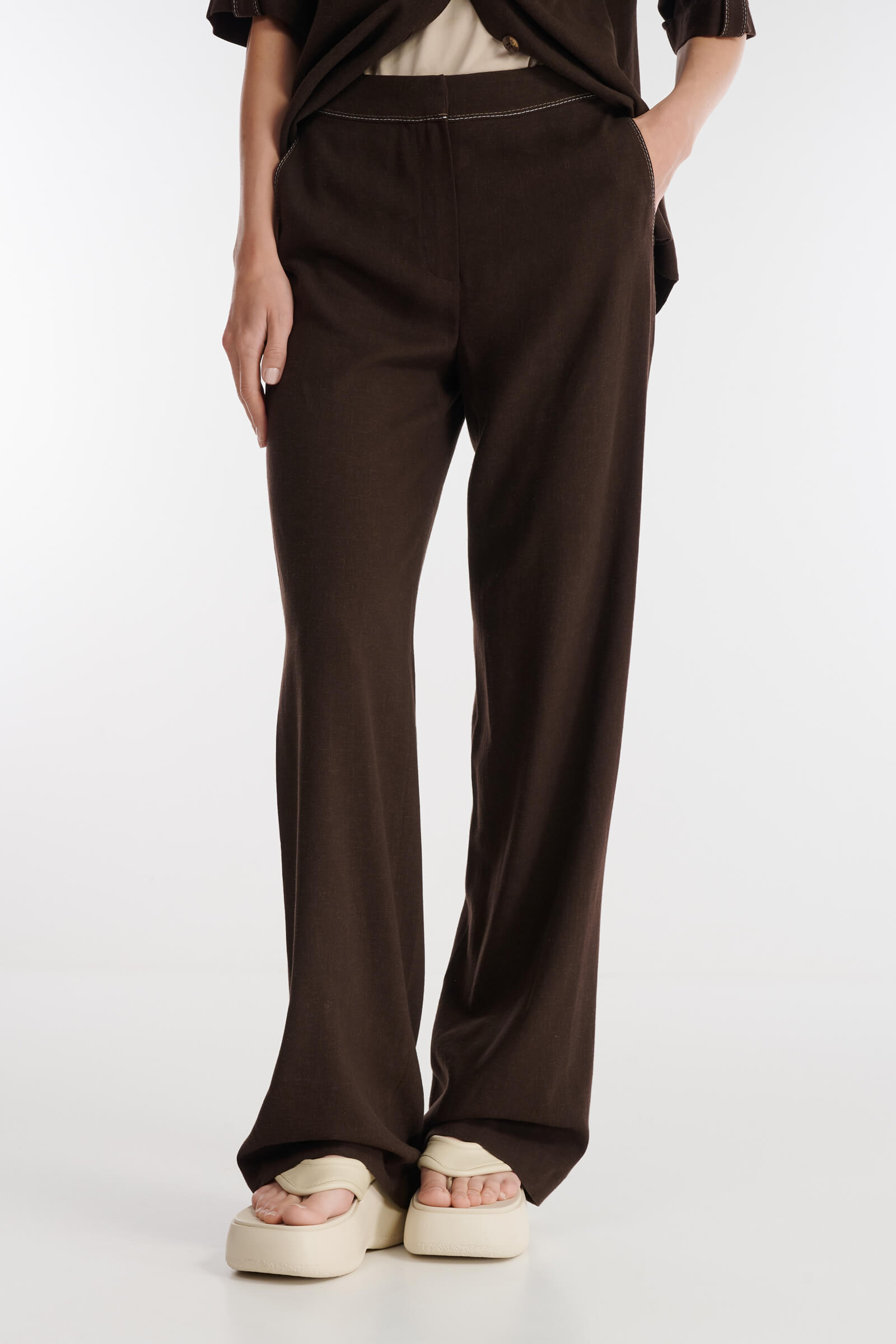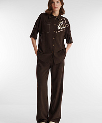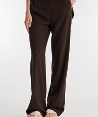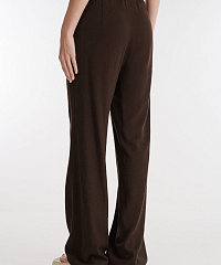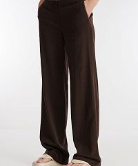 Брюки свободного кроя выполнены из приятного смесового материала на основе вискозы. Пояс с резинкой сзади обеспечивает комфортную посадку. Брюки составят гармоничную пару с легким трикотажным топом или с рубашкой в тон из той же линейки.
