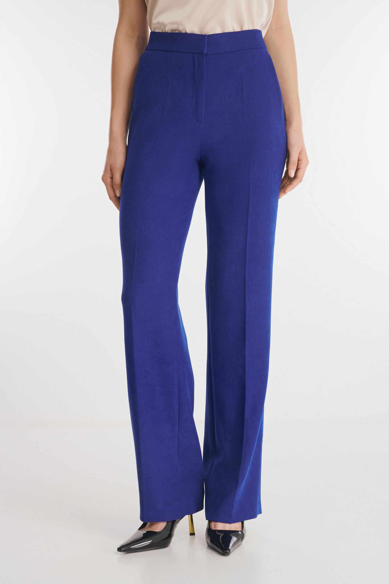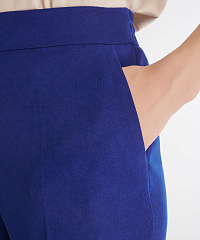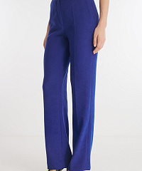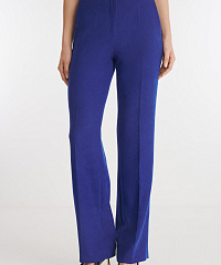 Брюки прямого кроя с завышенной посадкой. Пояс с резинкой сзади гарантирует комфорт во время носки. Модель выполнена из мягкого костюмного материала на основе вискозы. Стилизуйте брюки с пиджаком из той же линейки для создания готового образа.