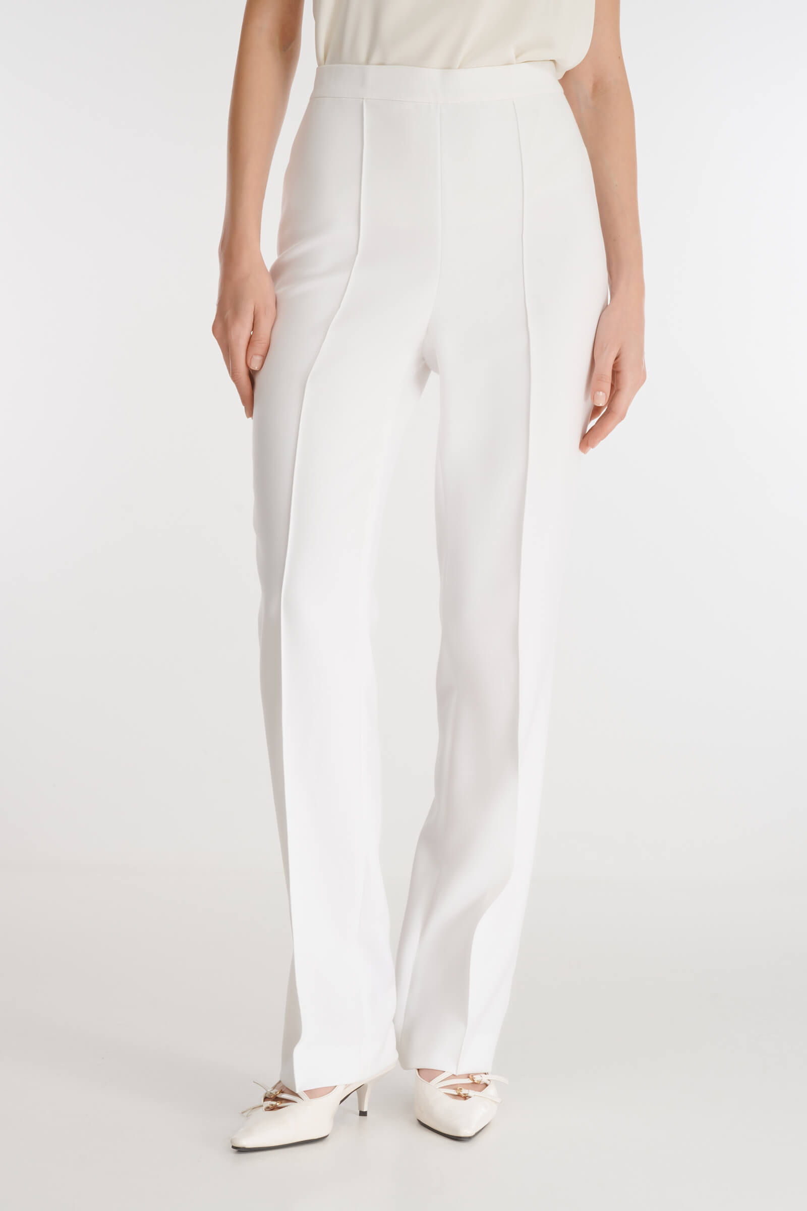 Простые, но элегантные брюки подойдут для создания как деловых, так и вечерних образов. Застежка на скрытую молнию сбоку и пояс на резинке гарантируют комфорт во время носки.