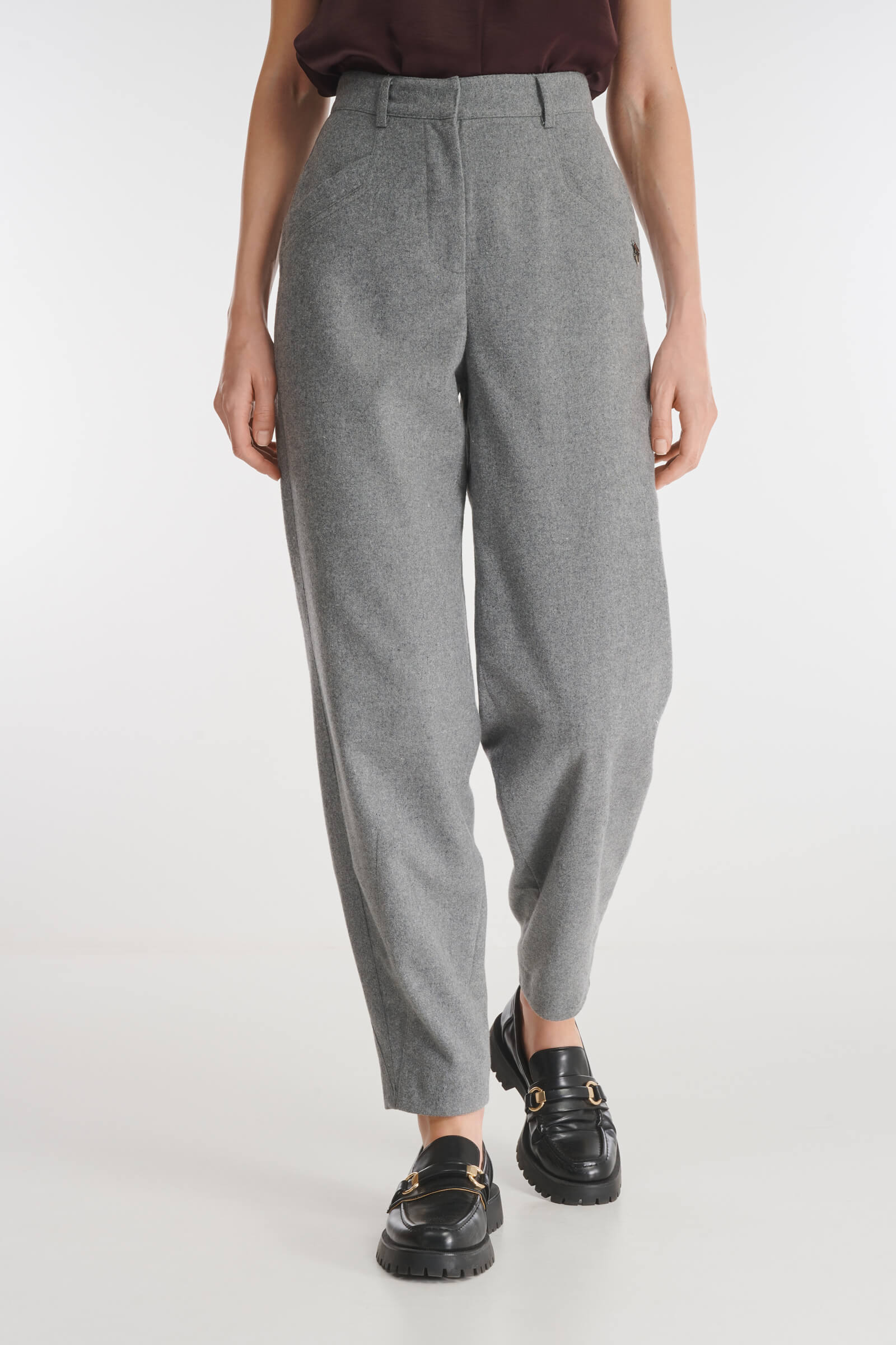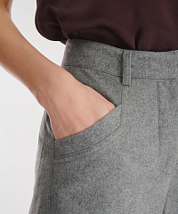 Брюки выполнены из мягкого смесового материала на основе вискозы с добавлением шерсти, что делает их идеальным компаньоном на зиму и демисезон. Лаконичный дизайн без лишних деталей гарантирует, что изделие станет универсальным дополнением образов. Пояс со шлевками позволяет дополнить брюки ремнем для большего комфорта и стиля.
