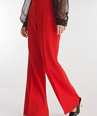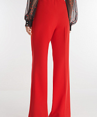 Брюки из плотного костюмного материала на основе вискозы. Модель придется по душе ценителям элегантного дизайна. Расклешенный крой и классические простроченные стрелки визуально вытягивают силуэт. В комплект к брюкам можно подобрать пиджак из той же линейки.