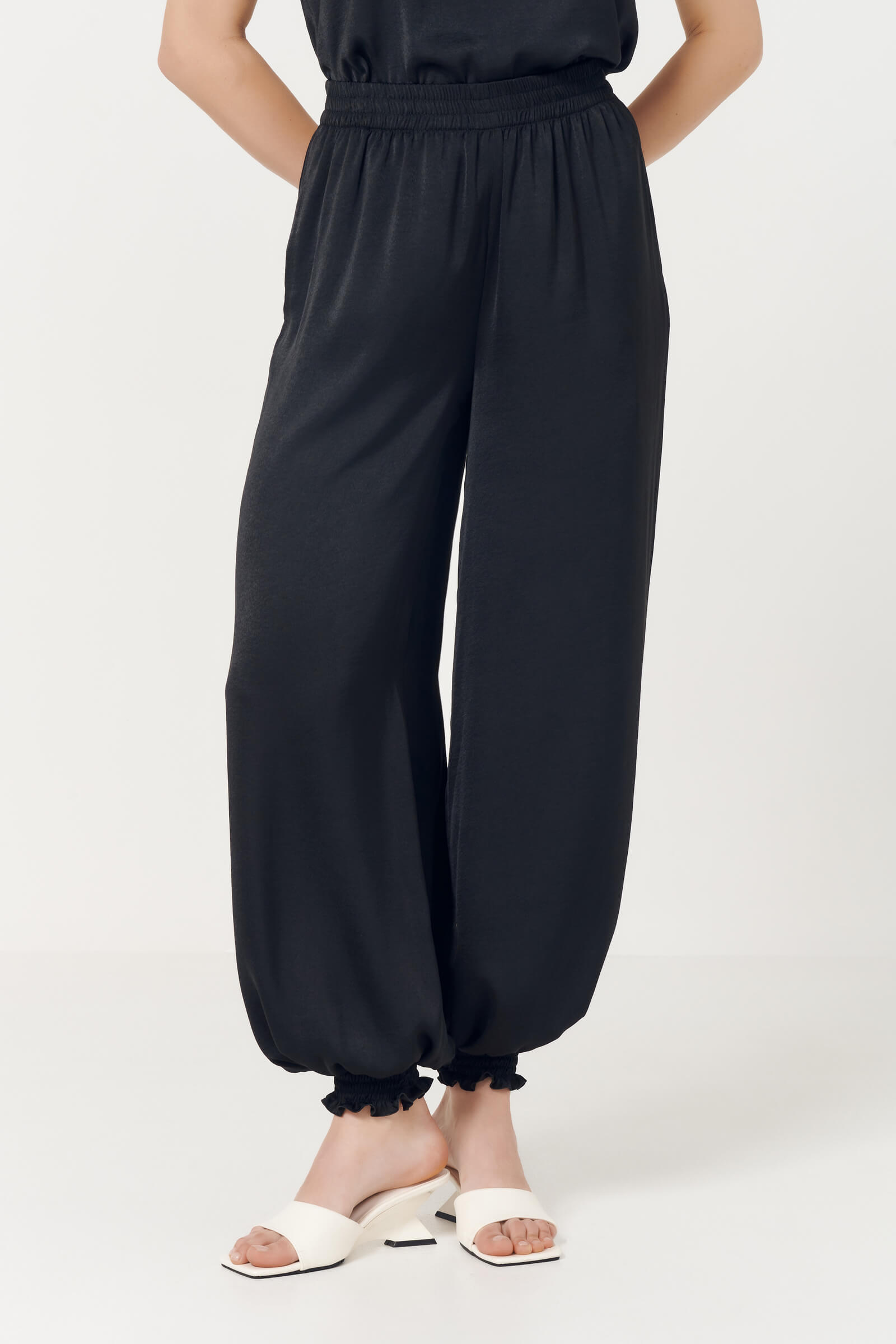 Элегантные брюки-алладины из легкого струящегося материала станут идеальным решением для лета. Эластичная резинка по линии талии и по низу брюк отлично тянется и не сдавливает. Боковые прорезные карманы служат идеальным дополнением.