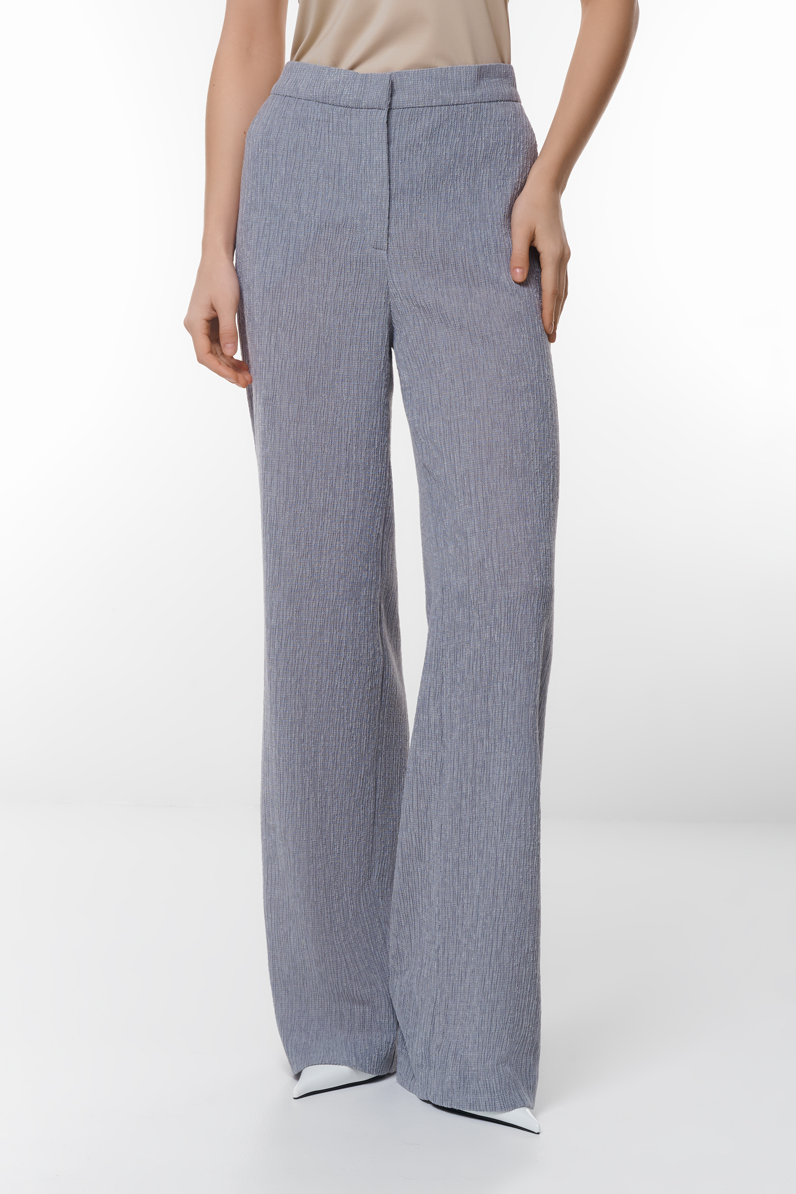 Эти стильные серые брюки с широким кроем идеально подойдут как для офиса, так и для повседневных выходов. Эластичный пояс обеспечивает максимальный комфорт, а текстурированный материал добавляет изюминку вашему образу. Сочетайте их с блузами или жакетами, создавая элегантные лукки.