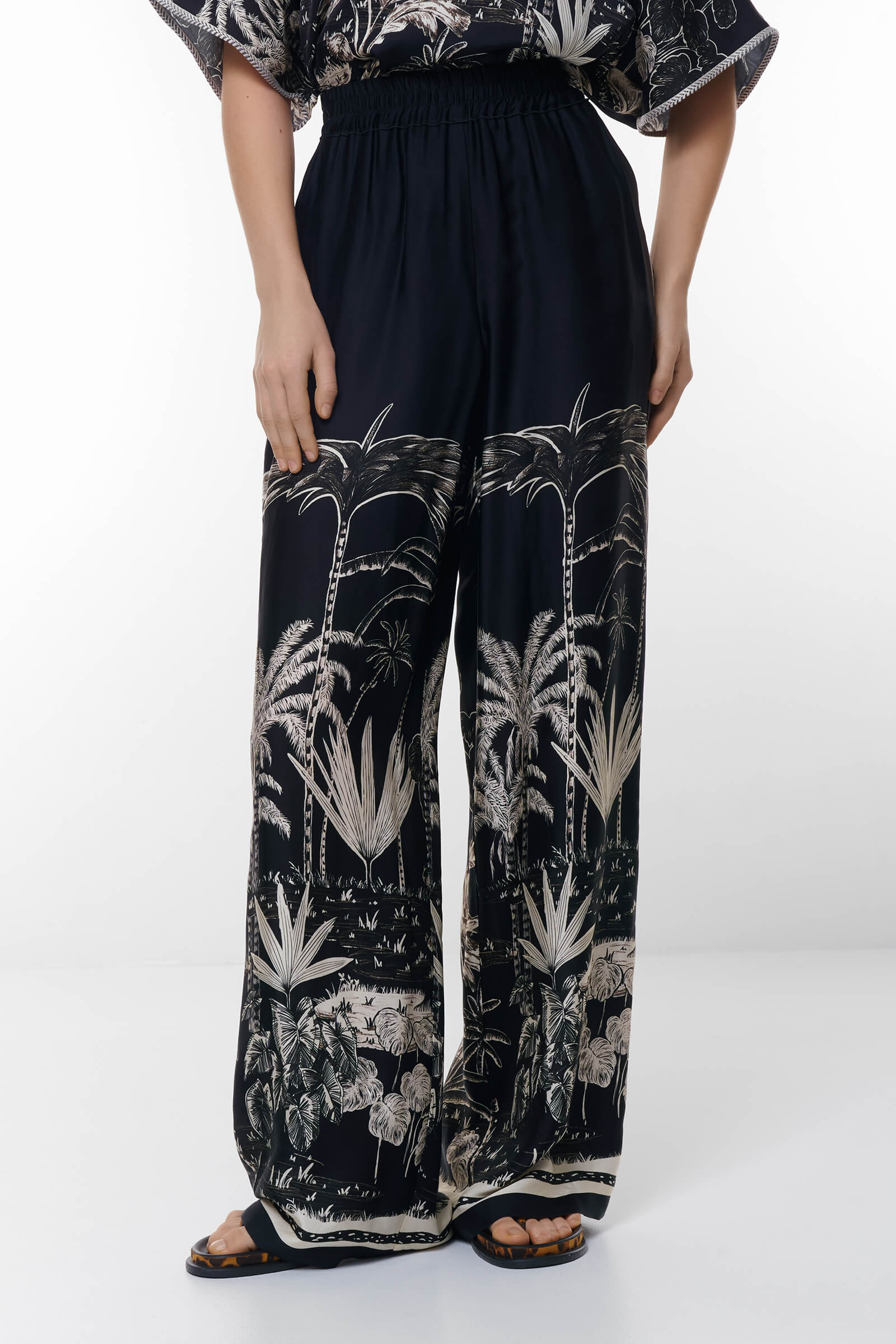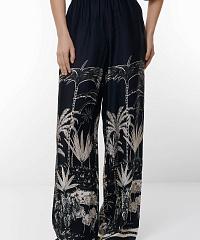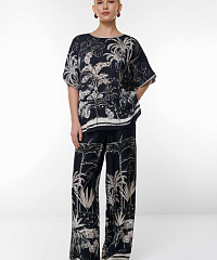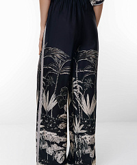 Добавьте в свой весенний гардероб эти стильные брюки с прекрасным растительным рисунком от Caterina Leman. Изготовленные из легкой и дышащей ткани, они обеспечивают комфорт в течение всего дня. Свободный покрой и эластичный пояс делают модель универсальной для любого типа фигуры. Черный цвет искусно контрастирует с изящным белым принтом, что позволяет легко сочетать брюки с различными топами и обувью. Идеальный выбор для прогулок по городу или уютных встреч с друзьями.