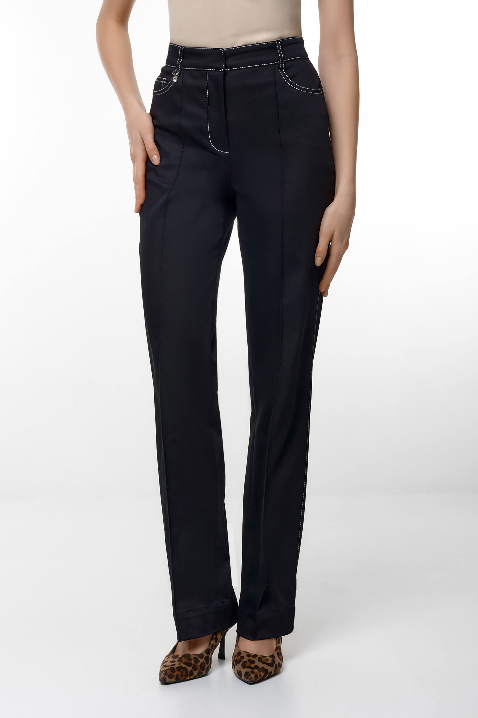Брюки с контрастной строчкой визуально вытягивает силуэт.