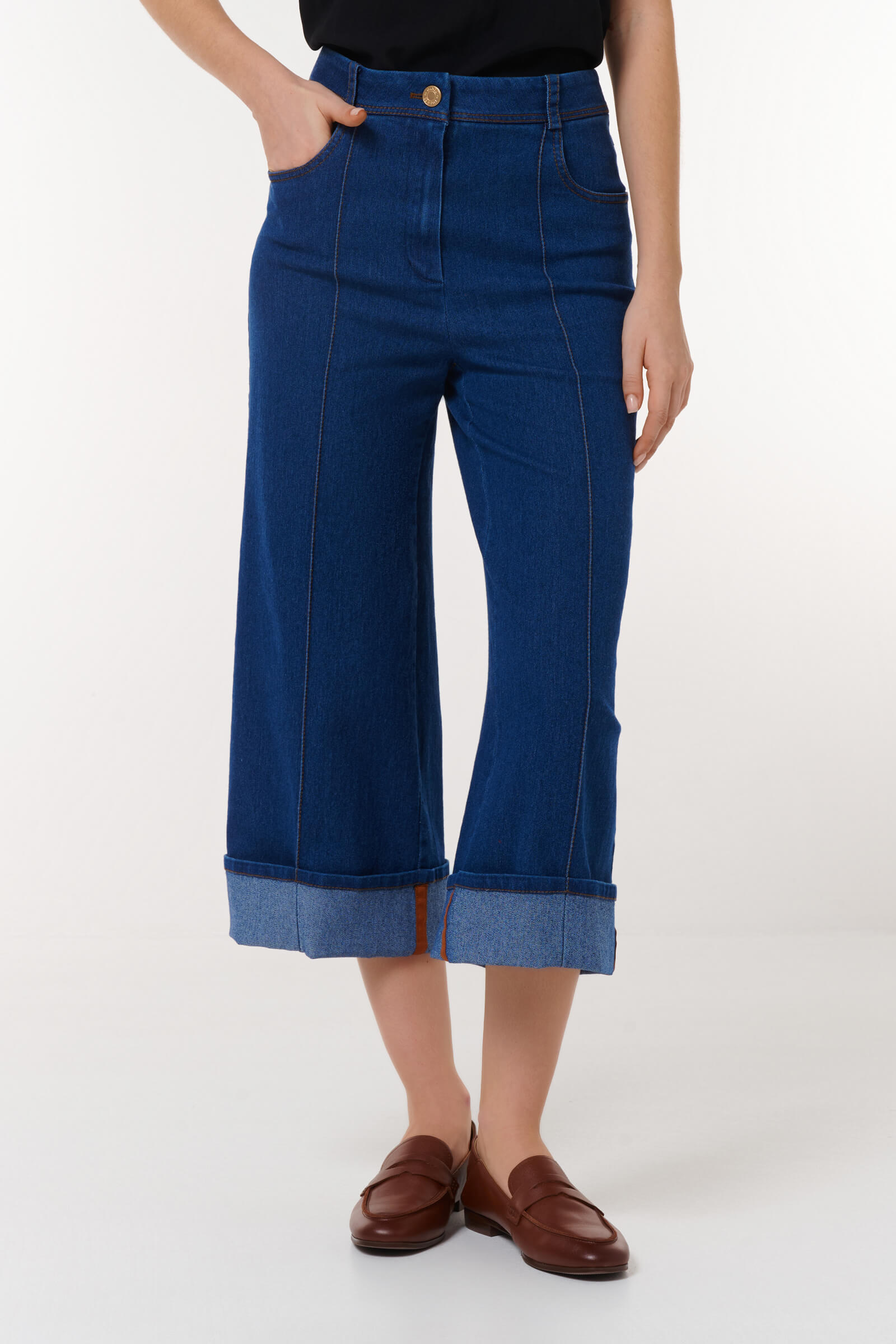 Кюлоты из денима с подворотами Caterina Leman