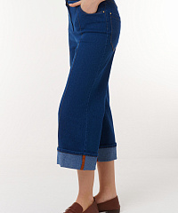 Кюлоты из денима с подворотами.Контрастная строчка добавляет изюминку.