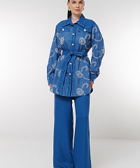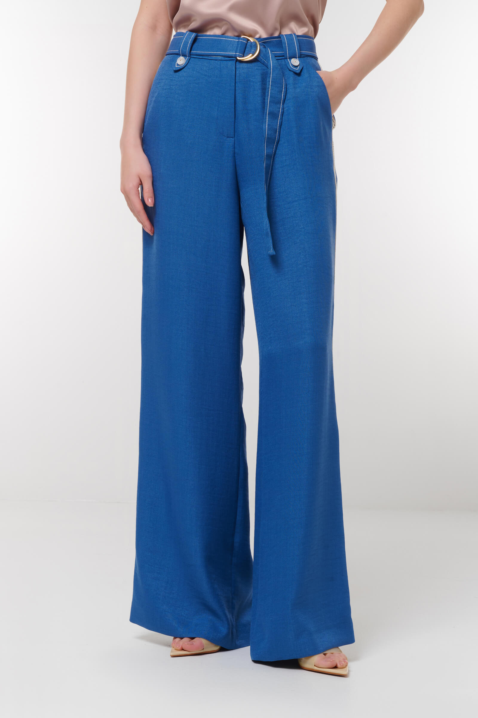 Добавьте в свой гардероб стильные брюки с контрастной строчкой. Эти широкие брюки с высокой талией обеспечивают комфорт и свободу движений, что делает их идеальным выбором для любого повода. Элегантный глубокий синий цвет подчеркивается контрастной отделкой, добавляя современный акцент вашему образу. Ремень в комплекте позволяет регулировать посадку по талии, а классические боковые карманы делают модель практичной. Создайте неповторимый стиль, сочетая эти брюки с различными топами и обувью!