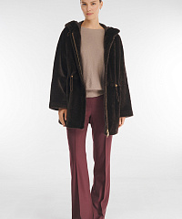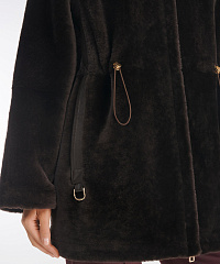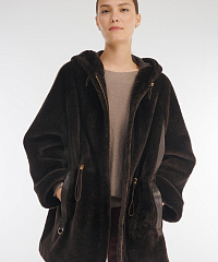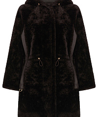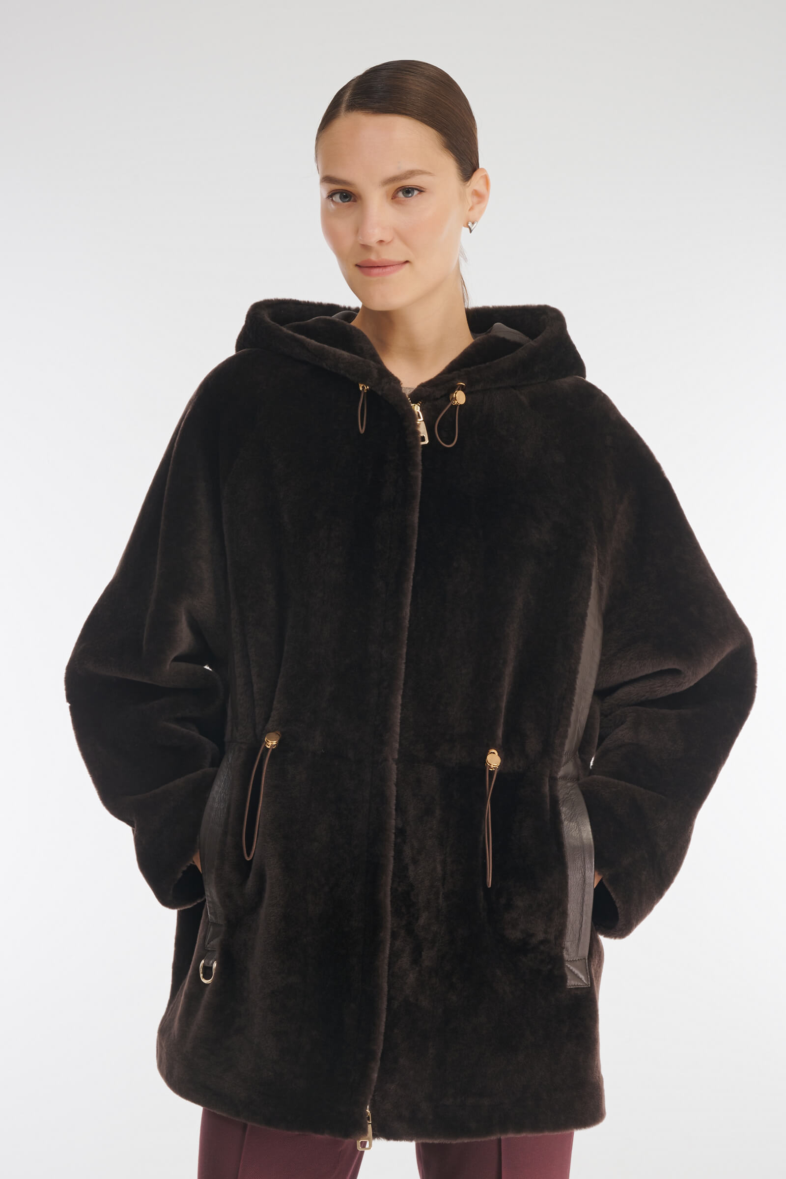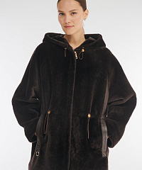 Современная дубленка свободного кроя из натурального меха. Силуэт трансформируется за счет регулируемой кулиски, позволяющей создать акцент на талии. Скрытые прорезные карманы и объемный капюшон отвечают за функциональность. Кожаные вставки подчеркивают минималистичную эстетику модели, которая удачно впишется в любой гардероб.