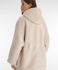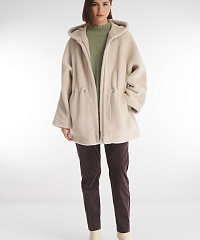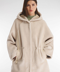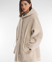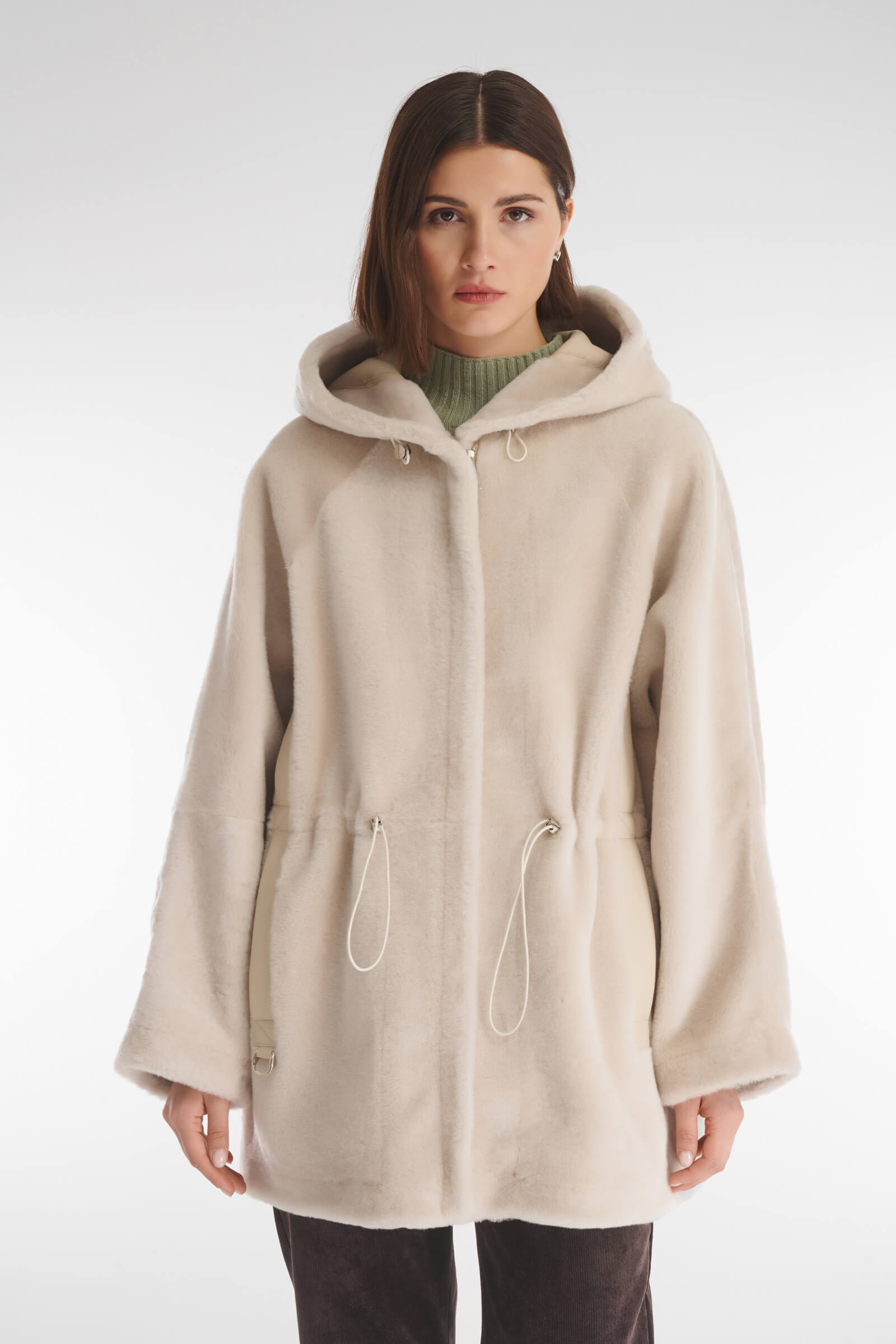 Современная дубленка свободного кроя из натурального меха. Силуэт трансформируется за счет регулируемой кулиски, позволяющей создать акцент на талии. Скрытые прорезные карманы и объемный капюшон отвечают за функциональность. Кожаные вставки подчеркивают минималистичную эстетику модели, которая удачно впишется в любой гардероб.