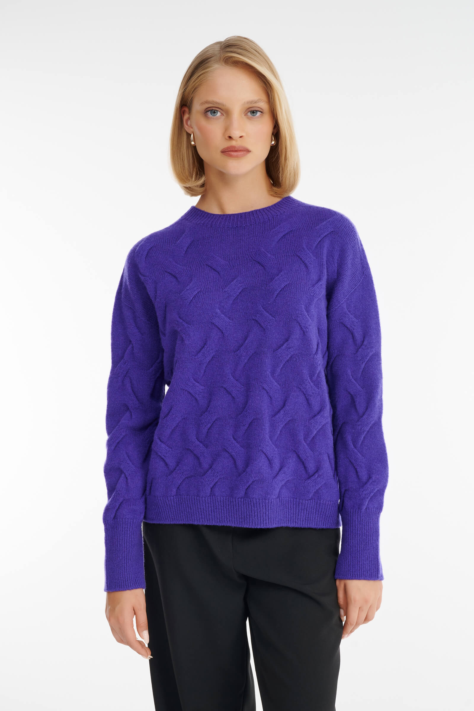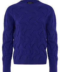 Уютный джемпер с круглым вырезом согреет вас в студеную погоду благодаря составу из смеси высококачественной шерсти и кашемира. Оригинальный вязаный узор и спущенная линия плеча дополняют дизайн.