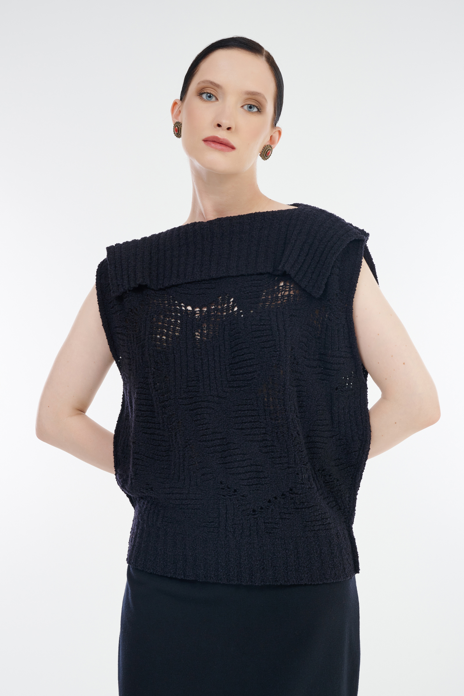 - Фигурный воротник с объемным отворотом