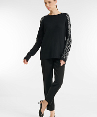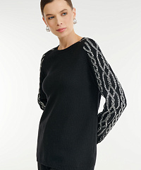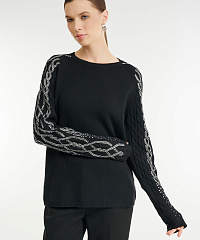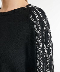 - Рукава украшены рельефной вязкой-косичкой и стразами