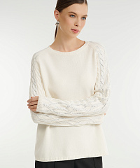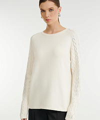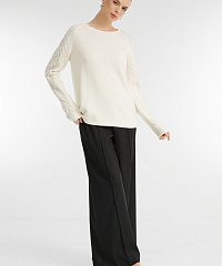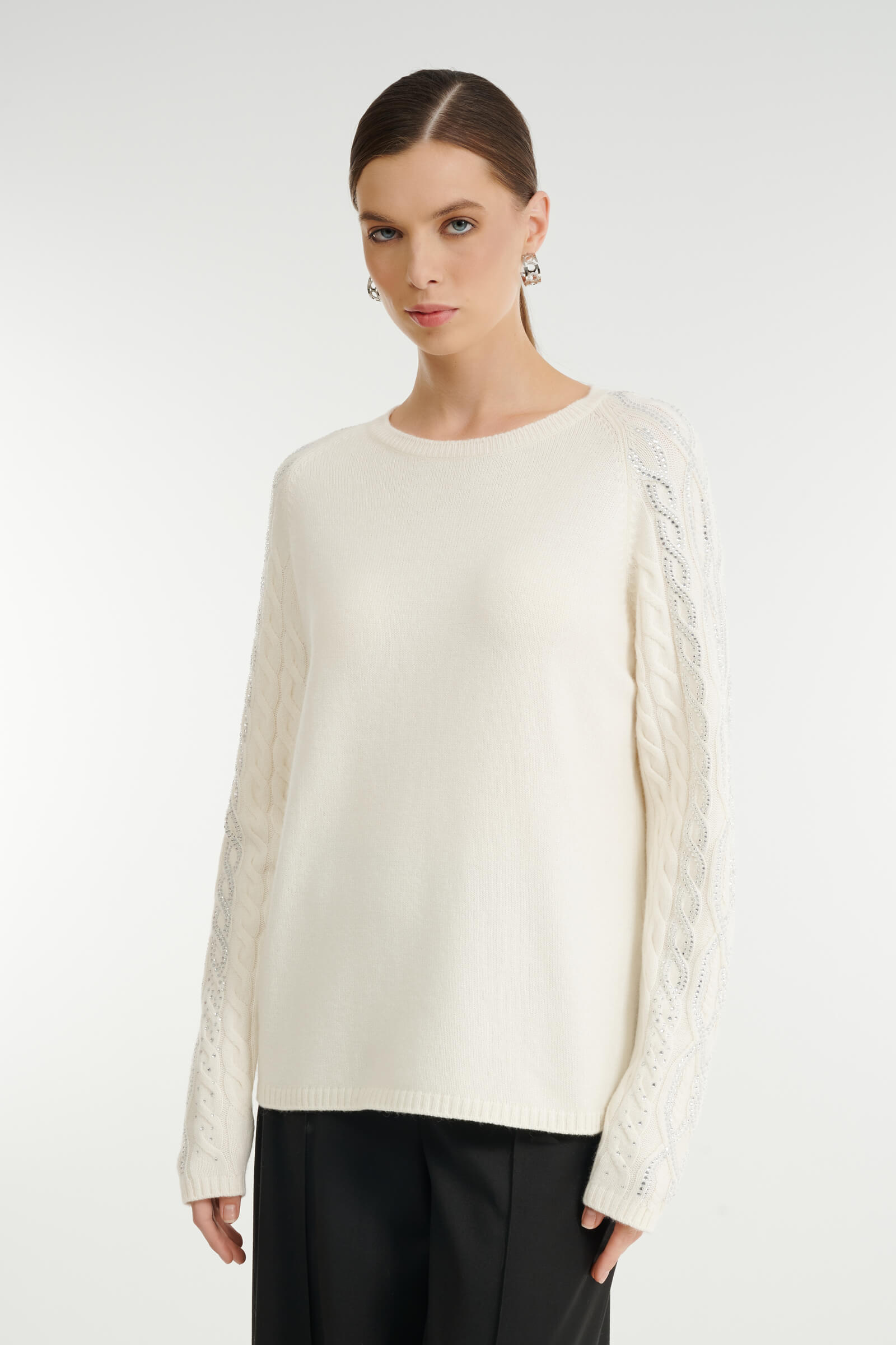 - Рукава украшены рельефной вязкой-косичкой и стразами