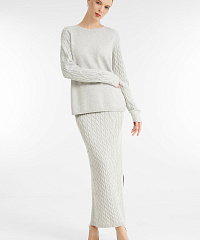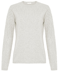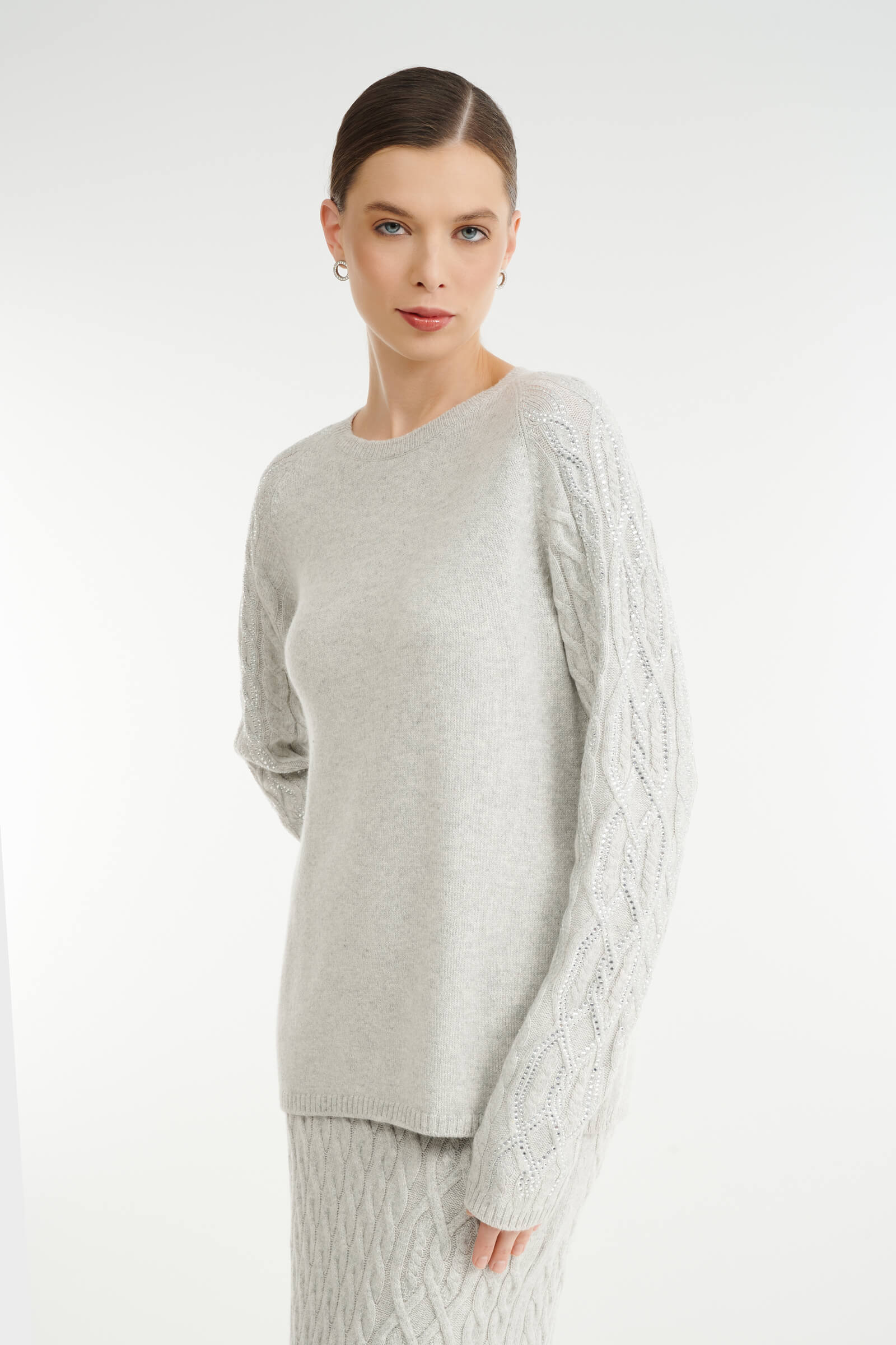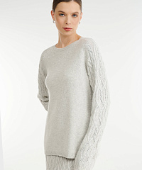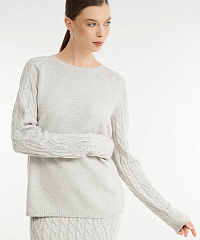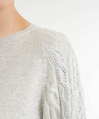 - Рукава украшены рельефной вязкой-косичкой и стразами