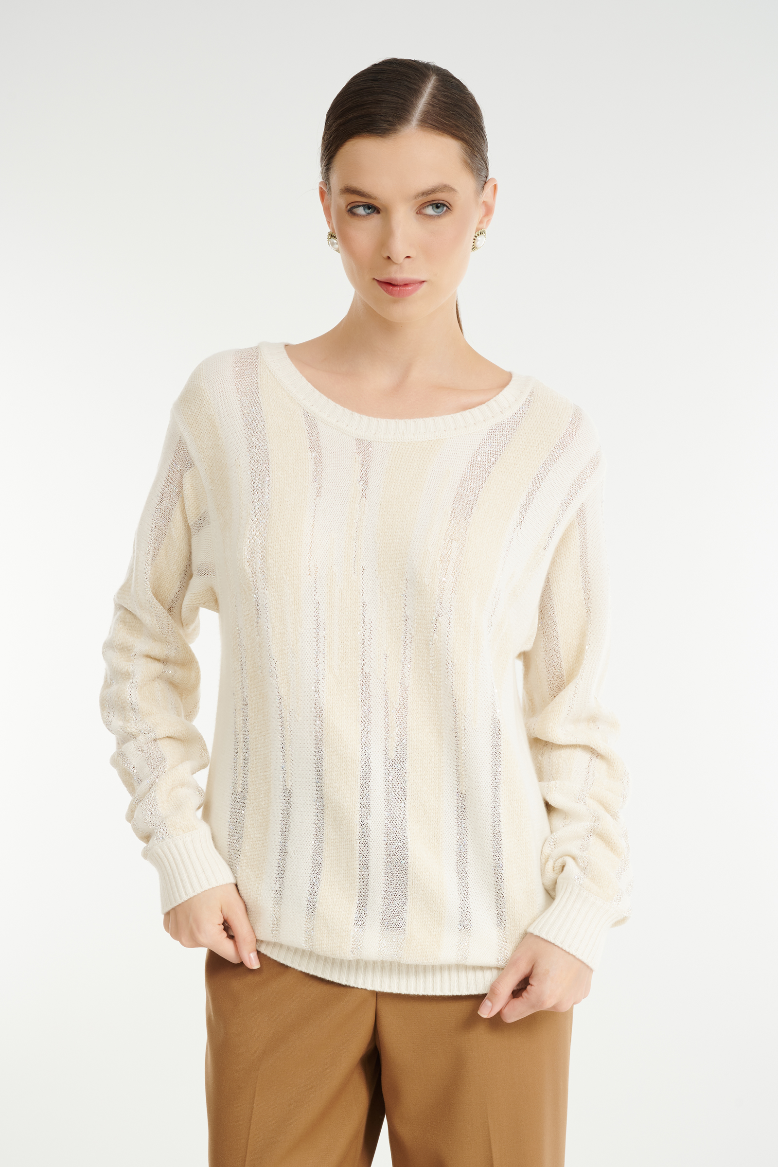 - Джемпер украшен узором с добавлением металлизированной нити и пайеток