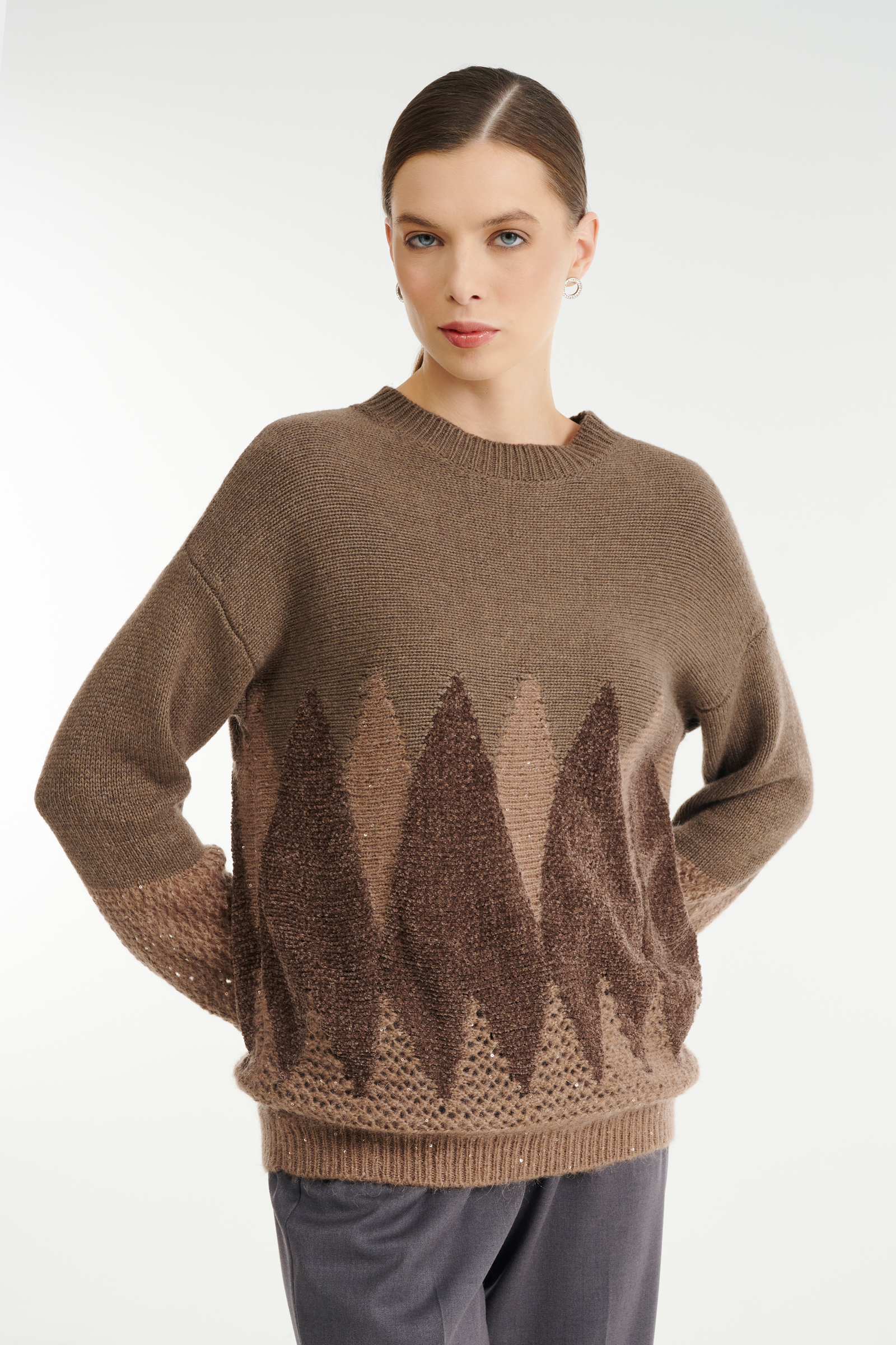 - Джемпер украшен фактурным узором и пайетками