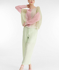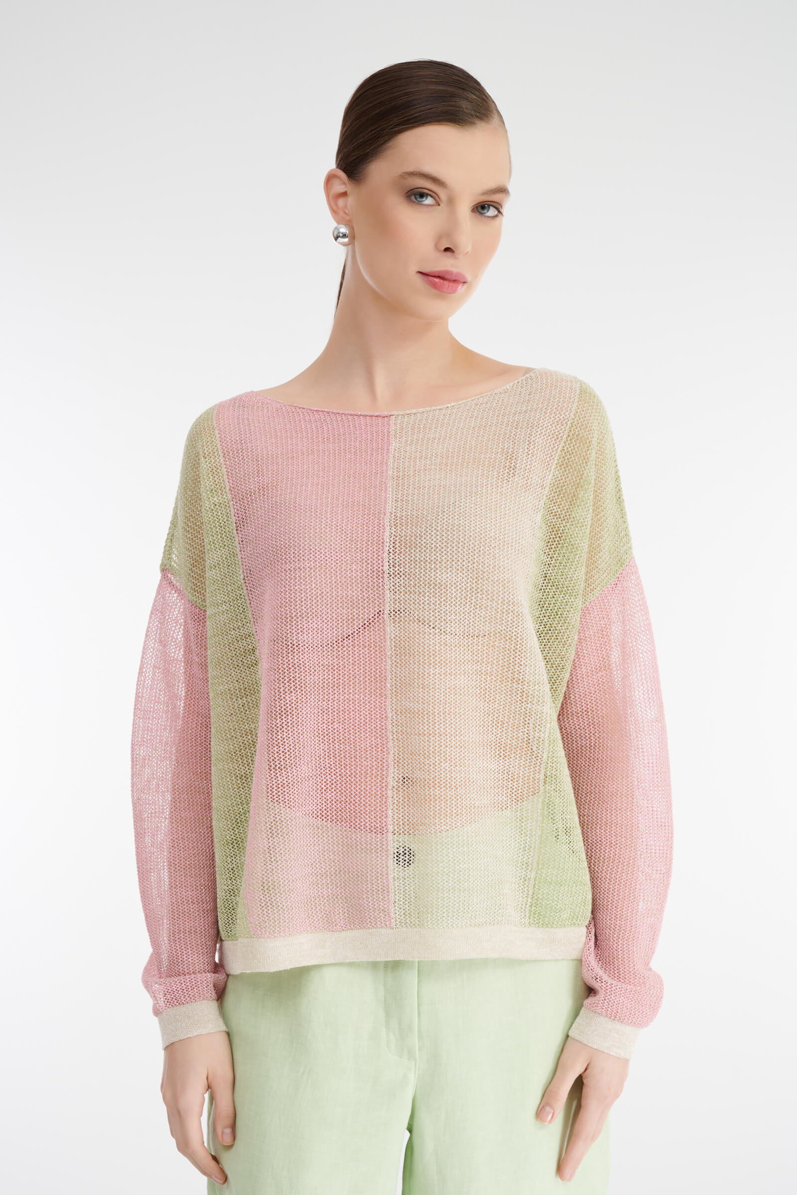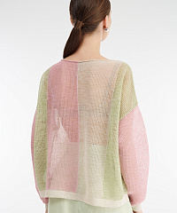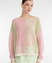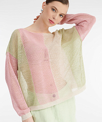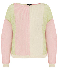 - Джемпер выполнен в стиле колор-блок и украшен люрексом