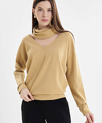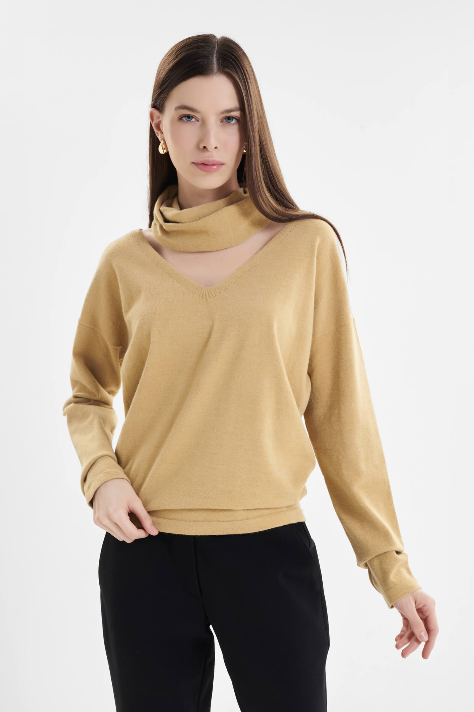- Пуловер дополнен съемным шарфом-снудом в тон