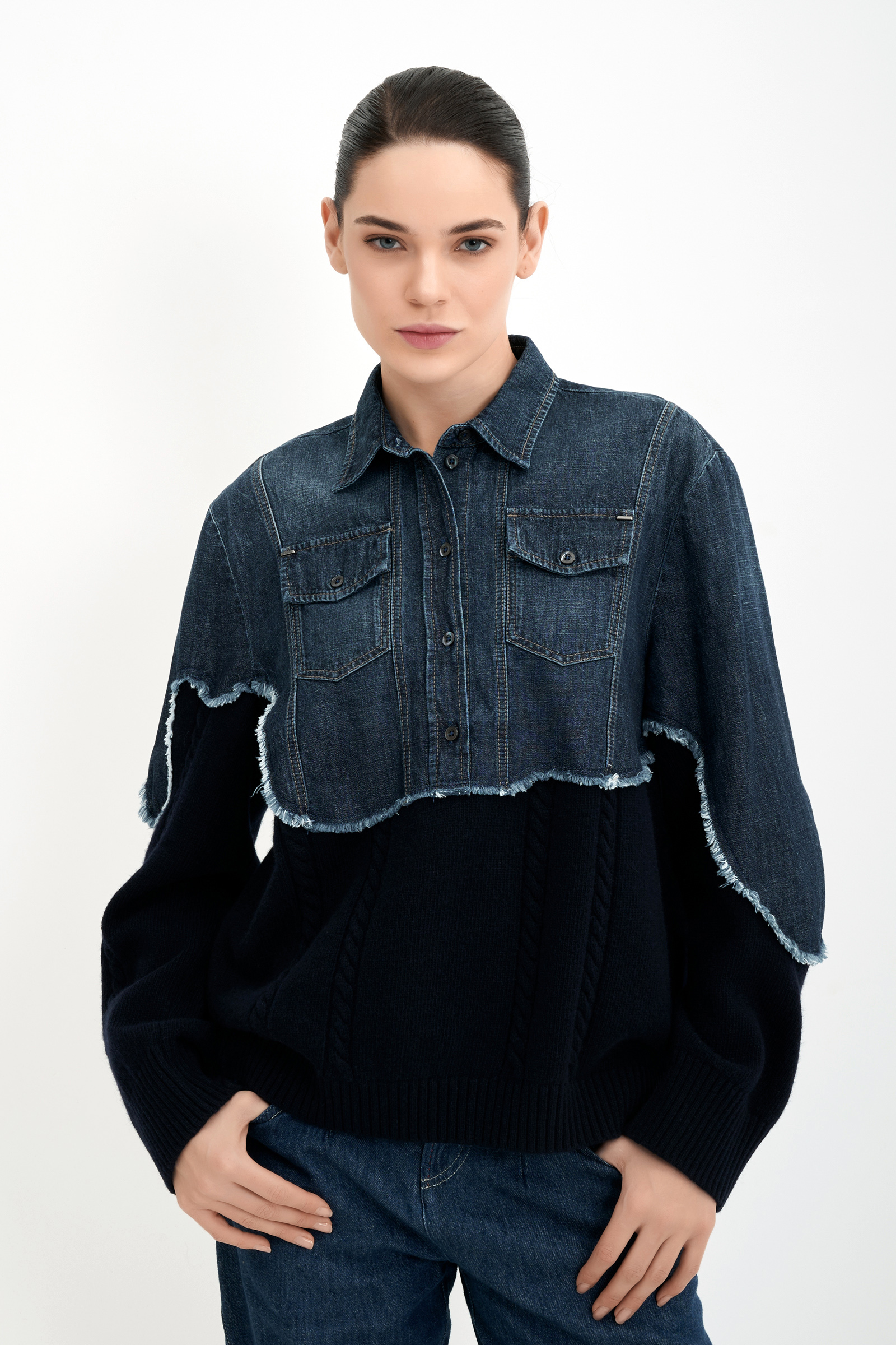 Джемпер с комбинированным денимом High