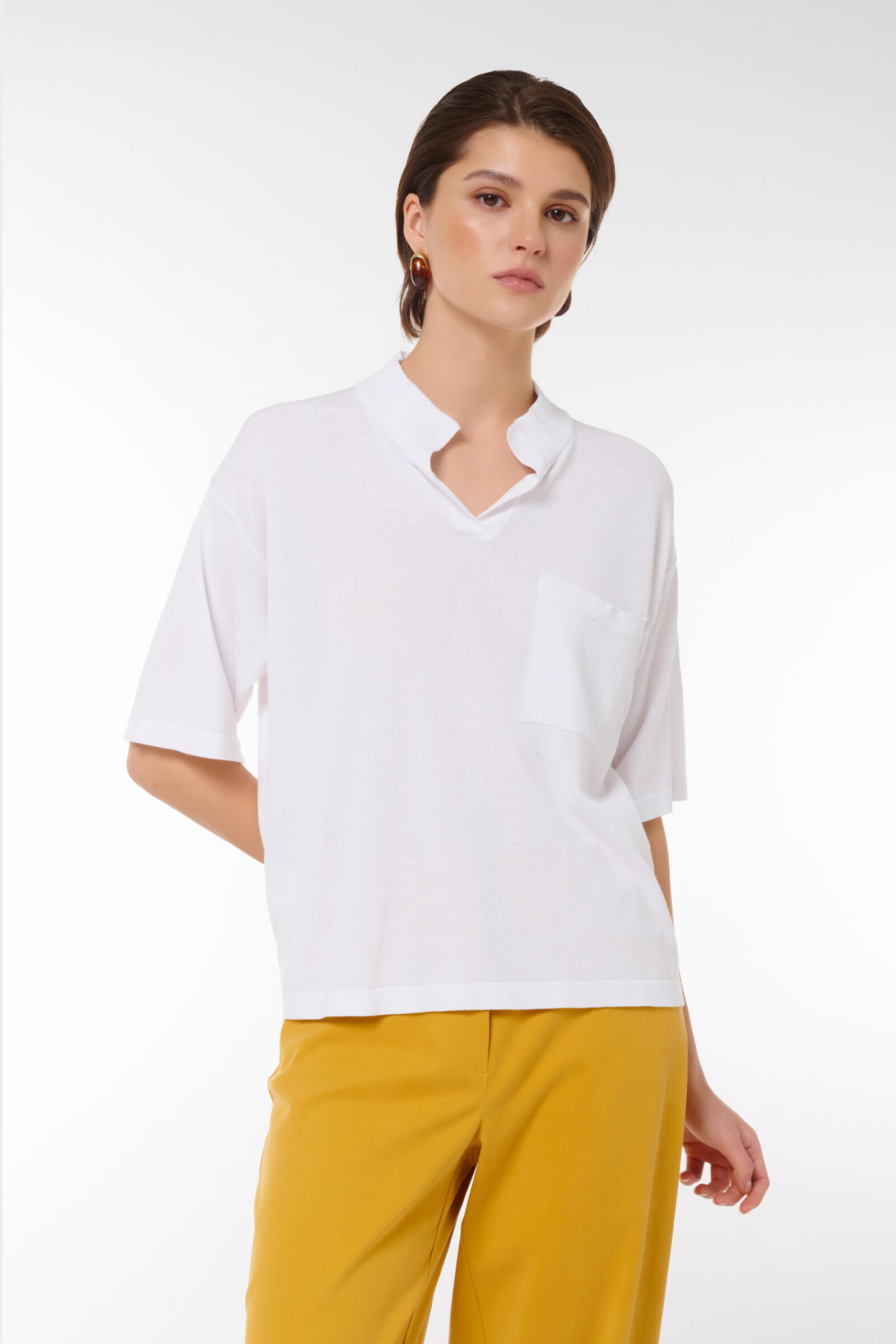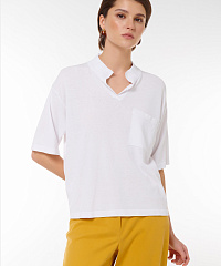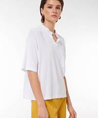 Представляем вашему вниманию стильный джемпер свободного кроя. Эта модель идеально подойдет для повседневной носки и станет отличным дополнением вашего гардероба. Уникальный воротник-стойка с вырезом придаёт образу изысканный вид. С короткими рукавами и легким силуэтом, джемпер станет вашим любимым выбором в теплое время года. Стильный, универсальный и удобный — это идеальный вариант для создания как casual, так и более элегантных образов.