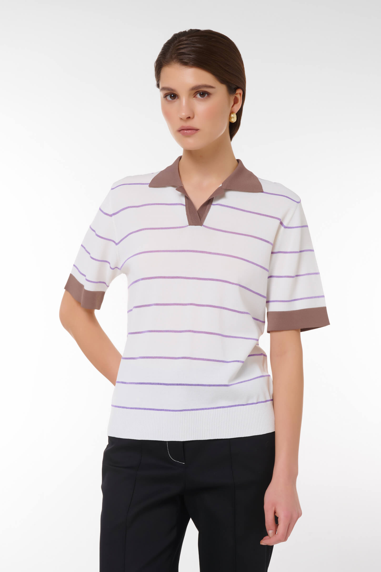 Стильное поло в полоску, которое станет отличным дополнением вашего гардероба.Короткие рукава и классический лайкровый воротник создают идеальный баланс между элегантностью и повседневным стилем. Идеально подходит как для встреч с друзьями, так и для активного отдыха на свежем воздухе. Не упустите возможность обновить свой образ с этой новинкой!