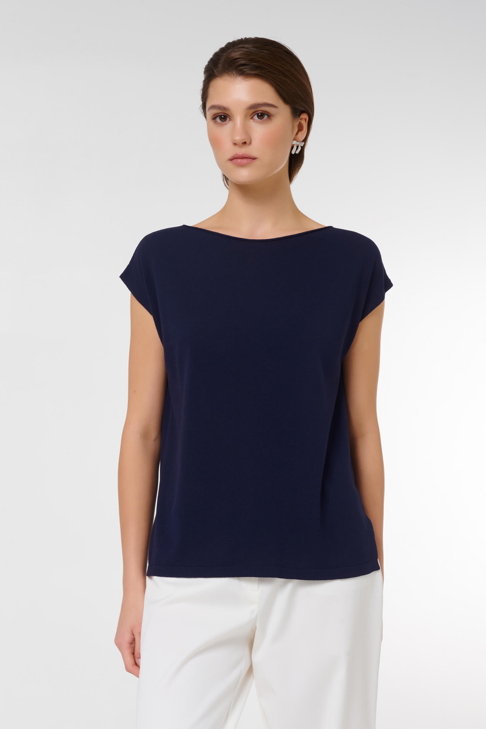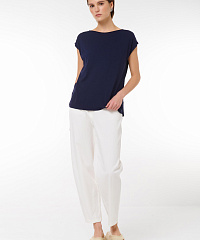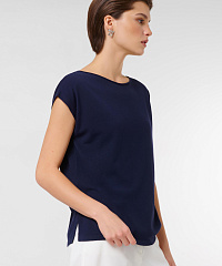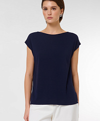Подарите себе комфорт и стиль с нашим джемпером свободного кроя. Элегантный темно-синий цвет легко сочетается с другими предметами вашего гардероба, а короткие рукава добавляют женственности образу. Создайте уникальный стиль, добавляя аксессуары на ваш вкус.