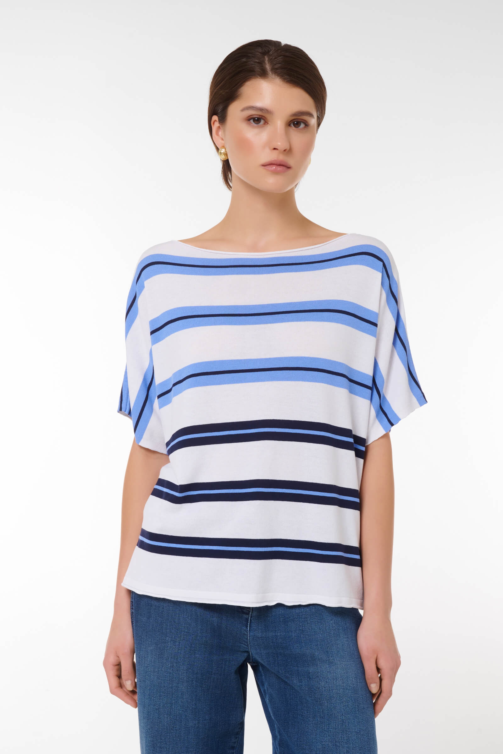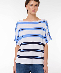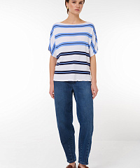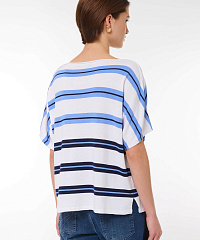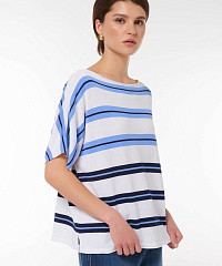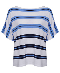 Этот стильный джемпер свободного кроя станет идеальным дополнением вашего гардероба. Нежная цветовая палитра с горизонтальными полосами придаст вашему образу элегантности и свежести. Короткие рукава и расслабленный крой позволяют удобно носить его как с джинсами, так и с юбками, создавая непринужденный и модный look.