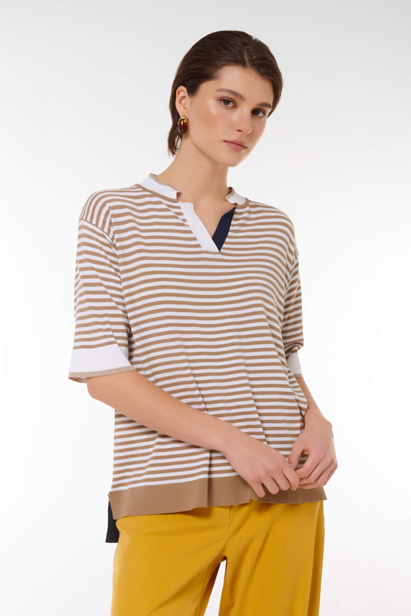 Стильный поло и короткие отворотные рукава добавляют шарм, а свободный силуэт делает его идеальным выбором для сочетания с различными элементами гардероба. Легкий и воздушный, этот джемпер прекрасно подойдет как для прогулок по городу, так и для уютных вечеров дома. Подчеркните свою индивидуальность и стиль, выбрав этот модный аксессуар!
