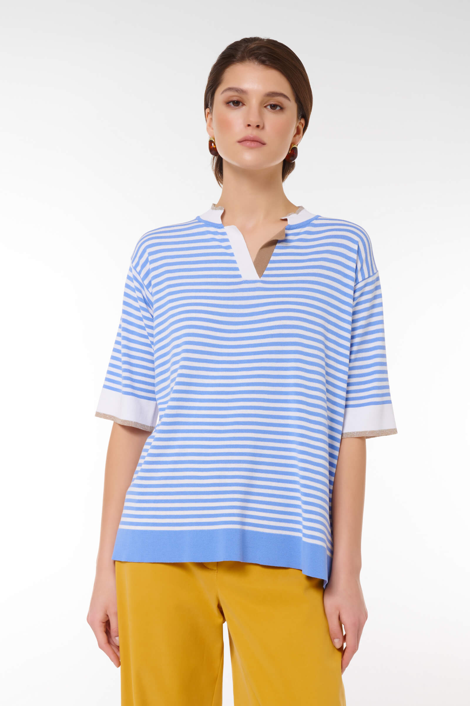 Стильный поло и короткие отворотные рукава добавляют шарм, а свободный силуэт делает его идеальным выбором для сочетания с различными элементами гардероба. Легкий и воздушный, этот джемпер прекрасно подойдет как для прогулок по городу, так и для уютных вечеров дома. Подчеркните свою индивидуальность и стиль, выбрав этот модный аксессуар!