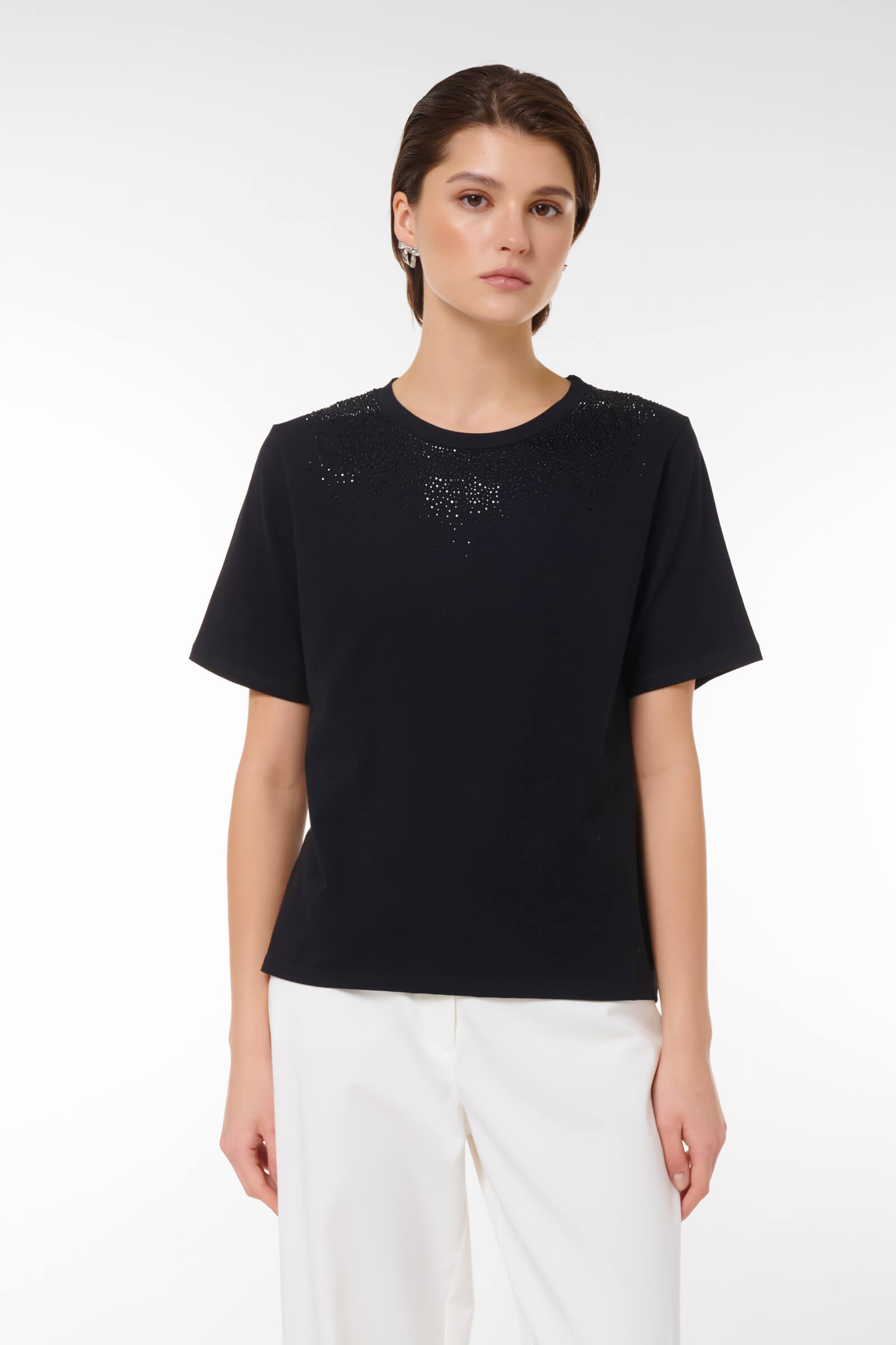 Добавьте изюминку в ваш гардероб с нашим стильным джемпером с декоративными стразами. Короткий рукав и круглый вырез придают ему современный вид, а изящные стразы на передней части создают эффектный акцент. Идеален как для повседневной носки, так и для более торжественных случаев. Стильный и универсальный, он легко комбинируется с различными нижними частями. Не упустите возможность подчеркнуть свою индивидуальность!