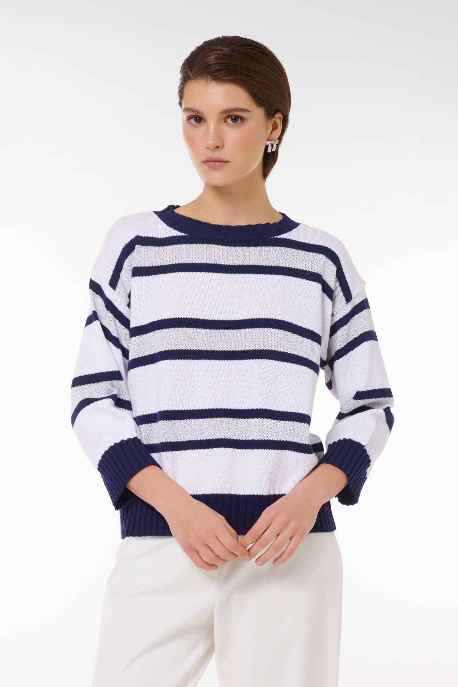 Добавьте стиль в ваш гардероб с этим шикарным джемпер с люрексом! Свободный крой и рукава 7\8 обеспечивают комфорт и стиль. Этот джемпер станет отличным выбором как для повседневных образов, так и для особых случаев.