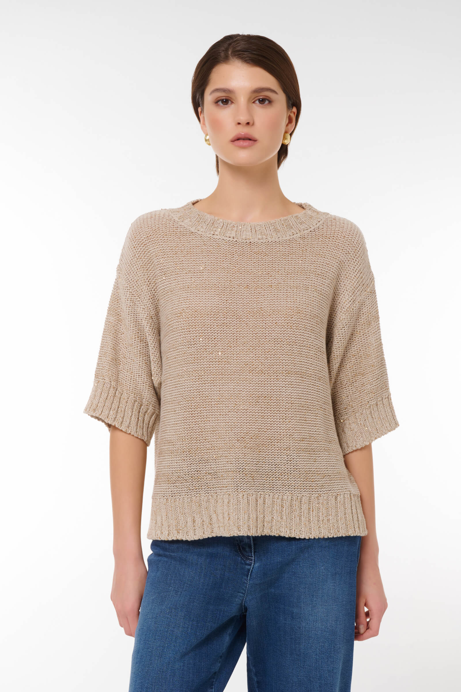 Джемпер с пайетками, который станет незаменимым элементом вашего гардероба.Удобный крой и короткие рукава делают этот джемпер идеальным для повседневного стиля и особых случаев. Сочетайте его с джинсами или юбкой для создания стильного образа. Позвольте себе наслаждаться качеством и элегантностью в каждой детали!