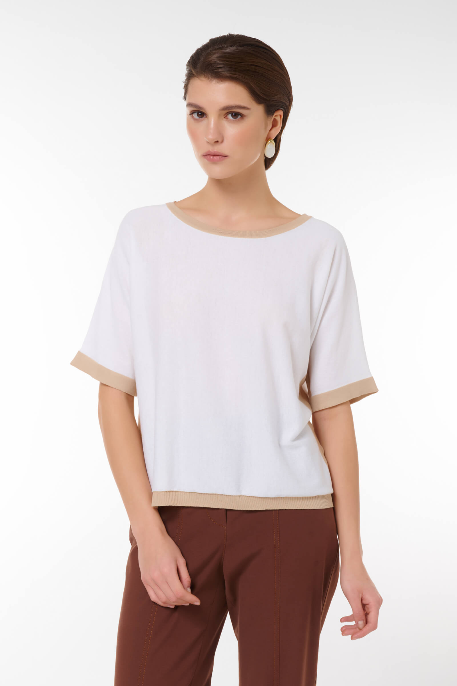 Добавьте в свой гардероб элегантный джемпер с люрексом! Короткие рукава и свободный крой придают ему стильный и расслабленный вид, а контрастная отделка из люрекса добавляет нотку блеска и утонченности. Идеально подходит как для повседневных образов, так и для более нарядных случаев, этот джемпер станет универсальным элементом вашего гардероба. Сочетайте его с брюками или юбками и наслаждайтесь комфортом и стилем!