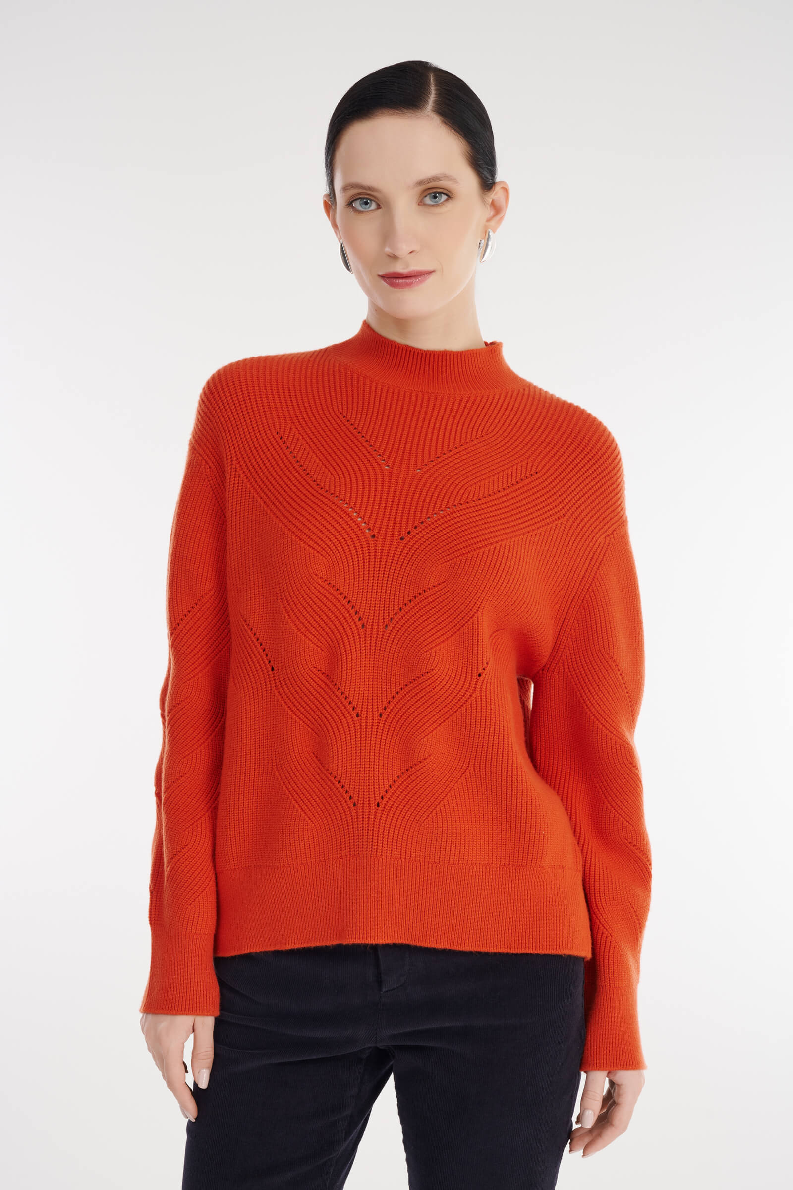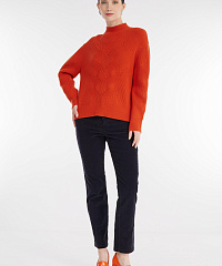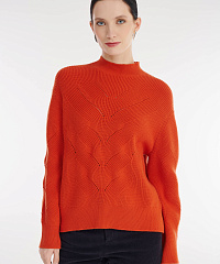 - Джемпер украшен динамичным узором с открытыми петлями