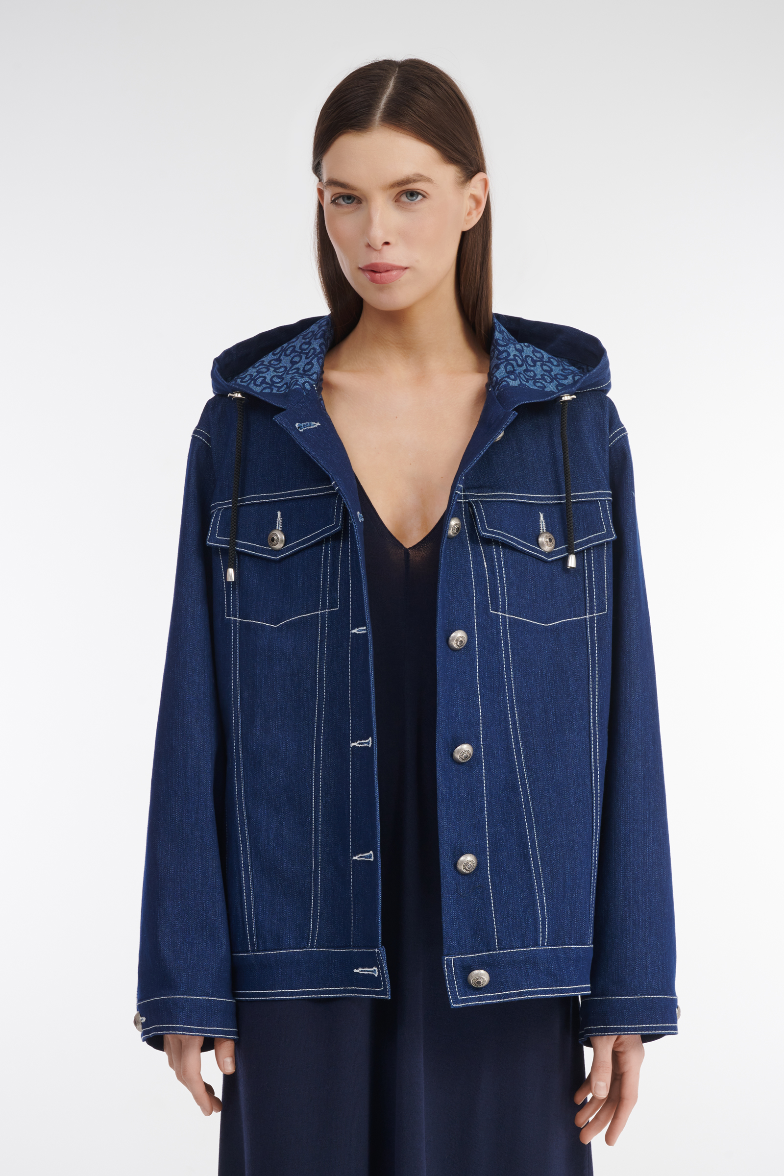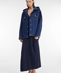 Джинсовая куртка свободного кроя незаменима в межсезонье, стильная и удобная, она станет вашим верным спутником в переменчивую погоду: плотный деним и капюшон на кулиске защитят от прохладного ветра и легкого дождя, свободный крой позволит надеть под нее теплый свитер. Куртка идеально подходит как для составления джинсового тотал-лука, так и для контрастных образов в сочетании с легким платьем или юбкой-плиссе.