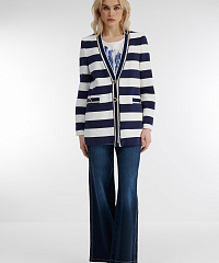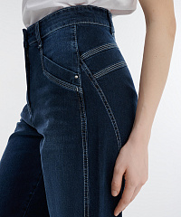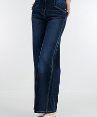 Утилитарность, комфорт и стиль — неотъемлемые качества джинсов от бренда Caterina Leman. Модель с имитацией естественных потертостей дополнена контрастной строчкой и немногочисленной фурнитурой в виде серебристых пуговиц и хольнитенов с маленькими стразами.