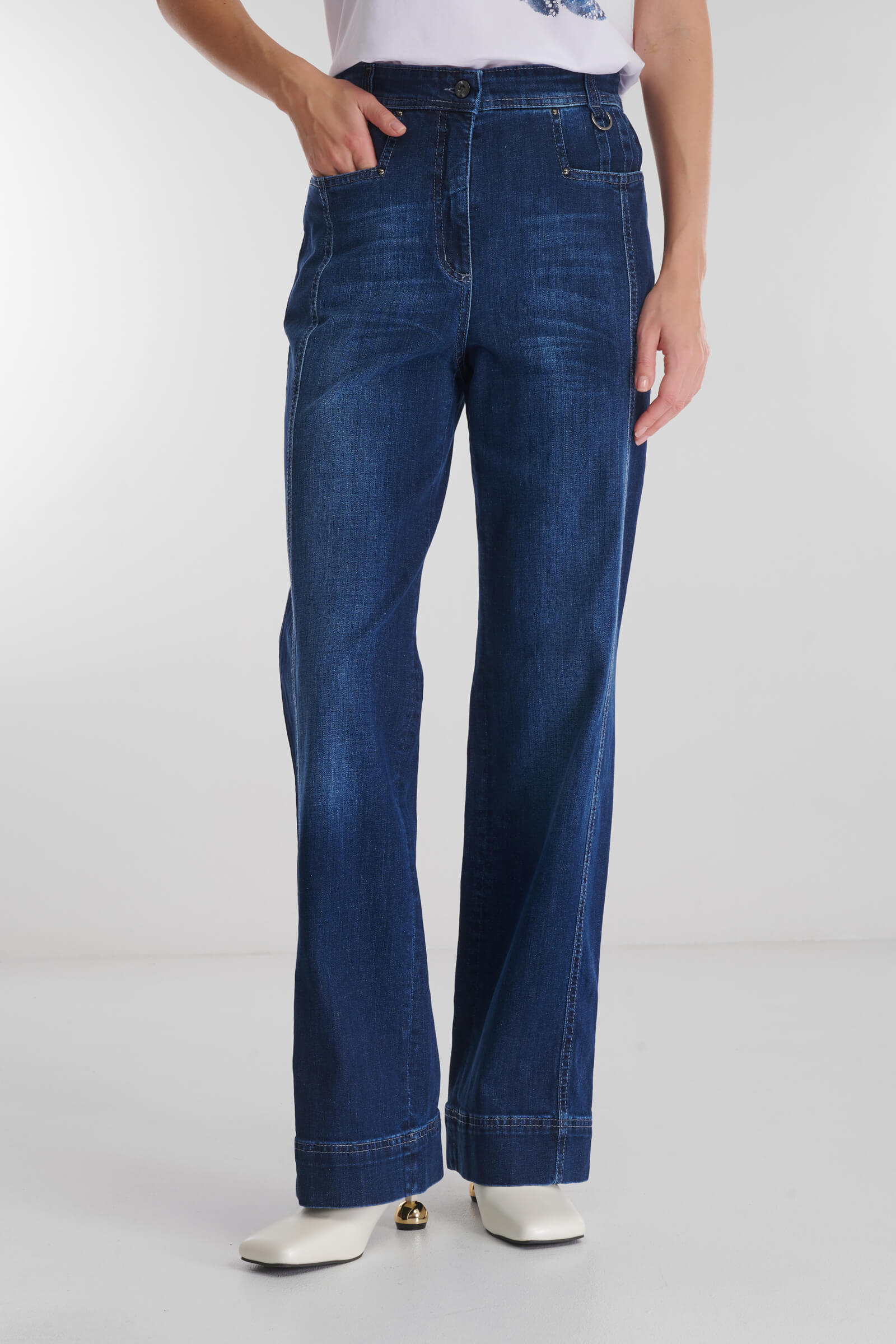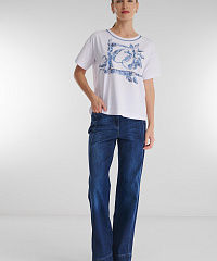 Джинсы — неотъемлемая часть повседневного гардероба. Классическая модель прямого кроя на высокой посадке остается актуальной вне зависимости от трендов. Слегка эластичный деним на основе хлопка обеспечивает комфортную посадку и свободу движений. Такие джинсы одинаково гармонично смотрятся и в деловых комплектах с блузкой, и в расслабленных образах с трикотажем или футболкой.