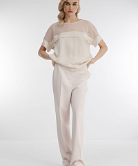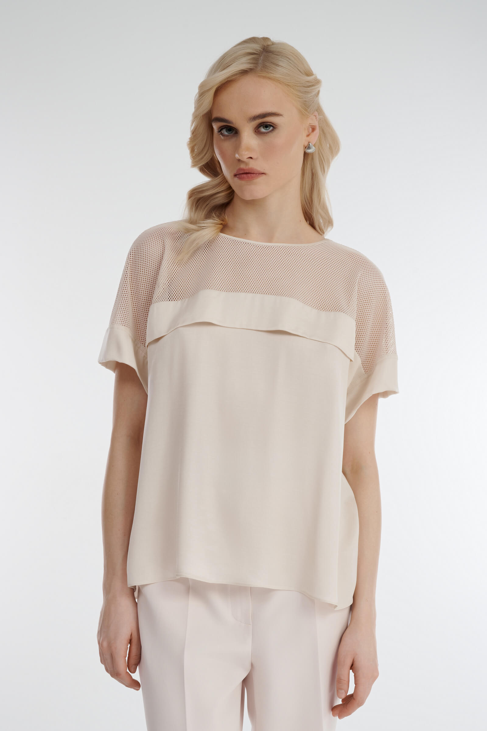Футболка свободного кроя с полочкой из сетки подходит для жарких летних дней, когда хочется максимального комфорта. Носите ее с бермудами, легкими льняными брюками или юбкой. Неформальный характер футболки позволит надеть ее даже с джоггерами. Модель сшита из невесомой вискозы и пропускает даже самый легкий ветерок.