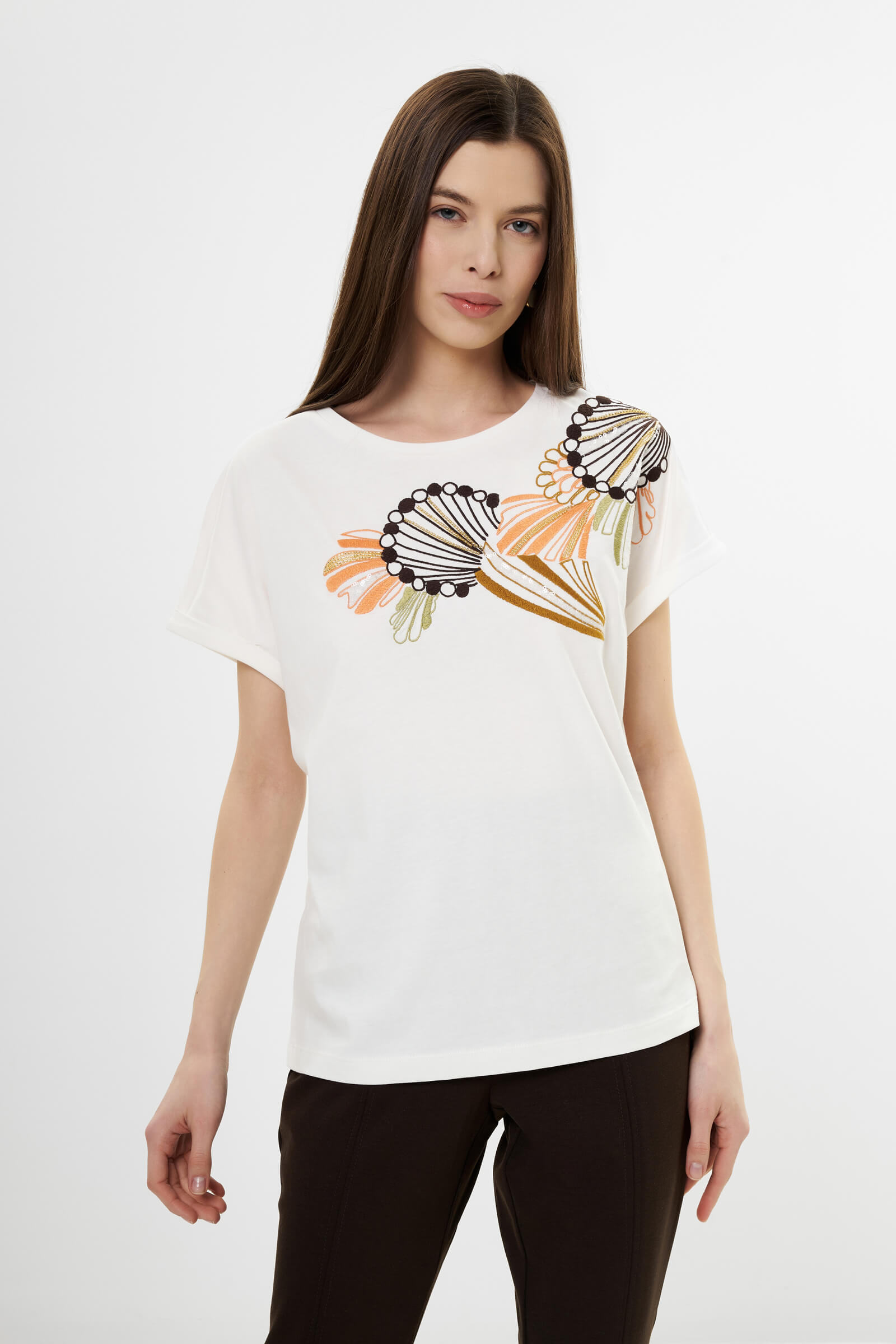 - Цветочный принт и отделка бисером и пайетками
