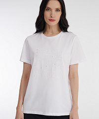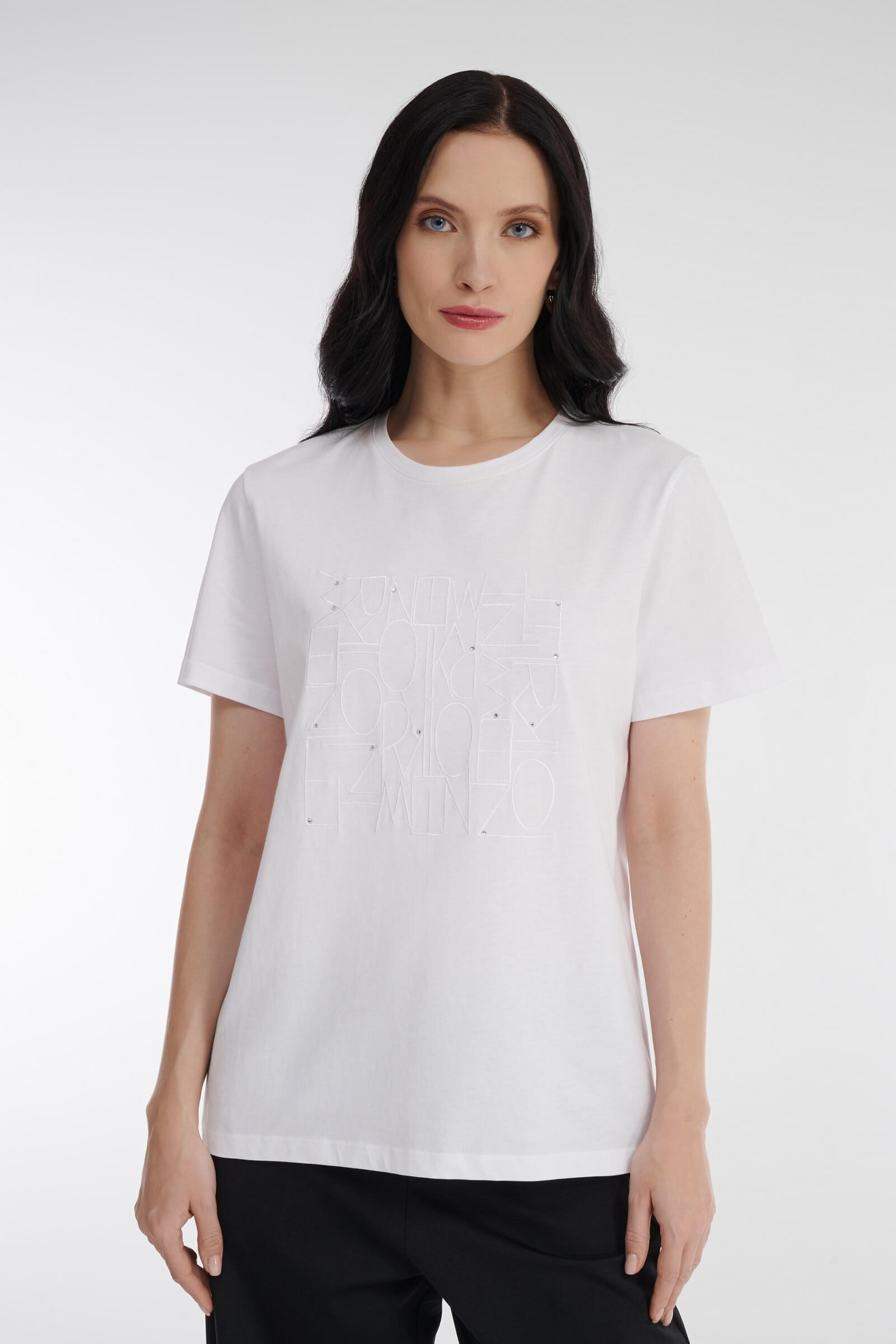 Хлопковая футболка с узором и стразами Diana Gallesi