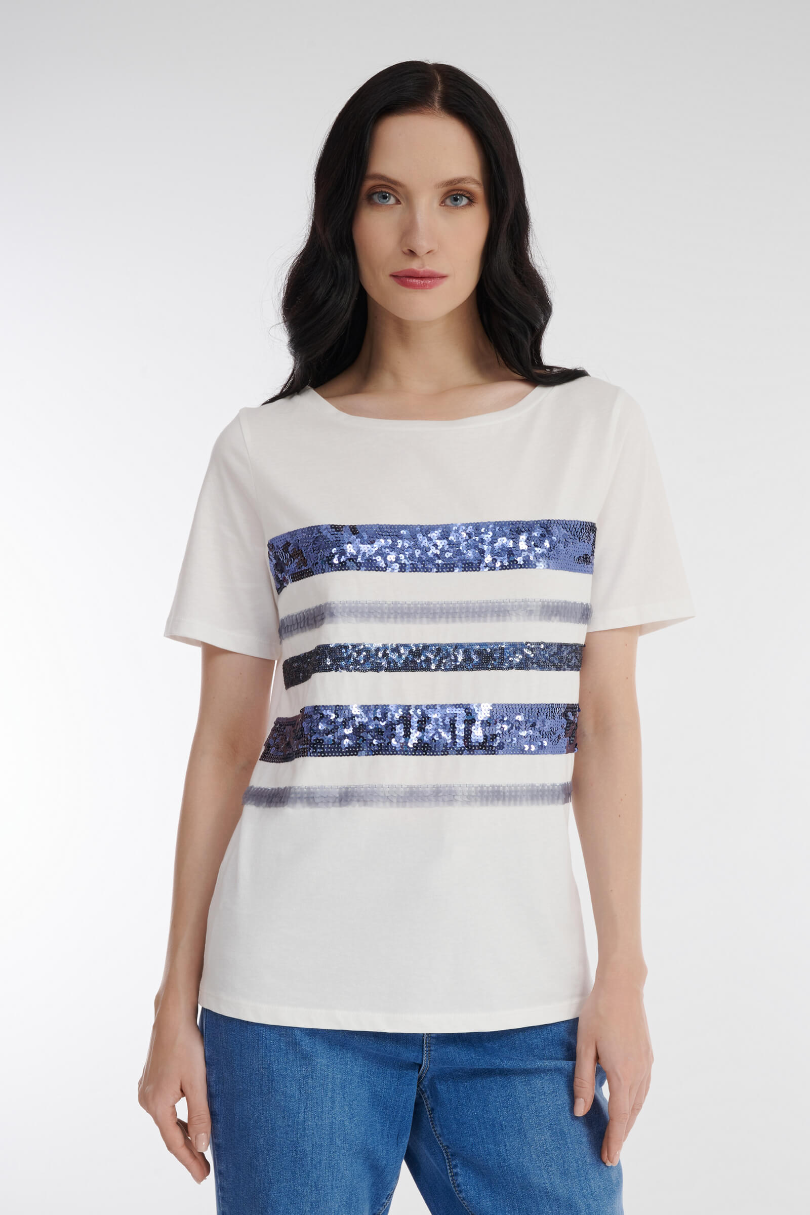 - Принт полоска и декор с пайетками